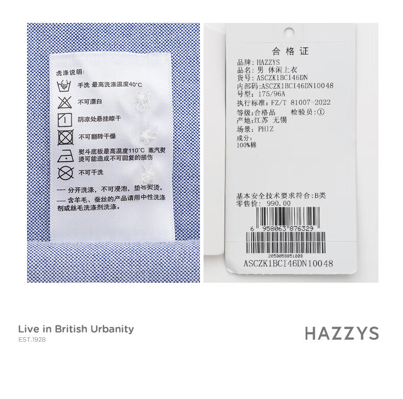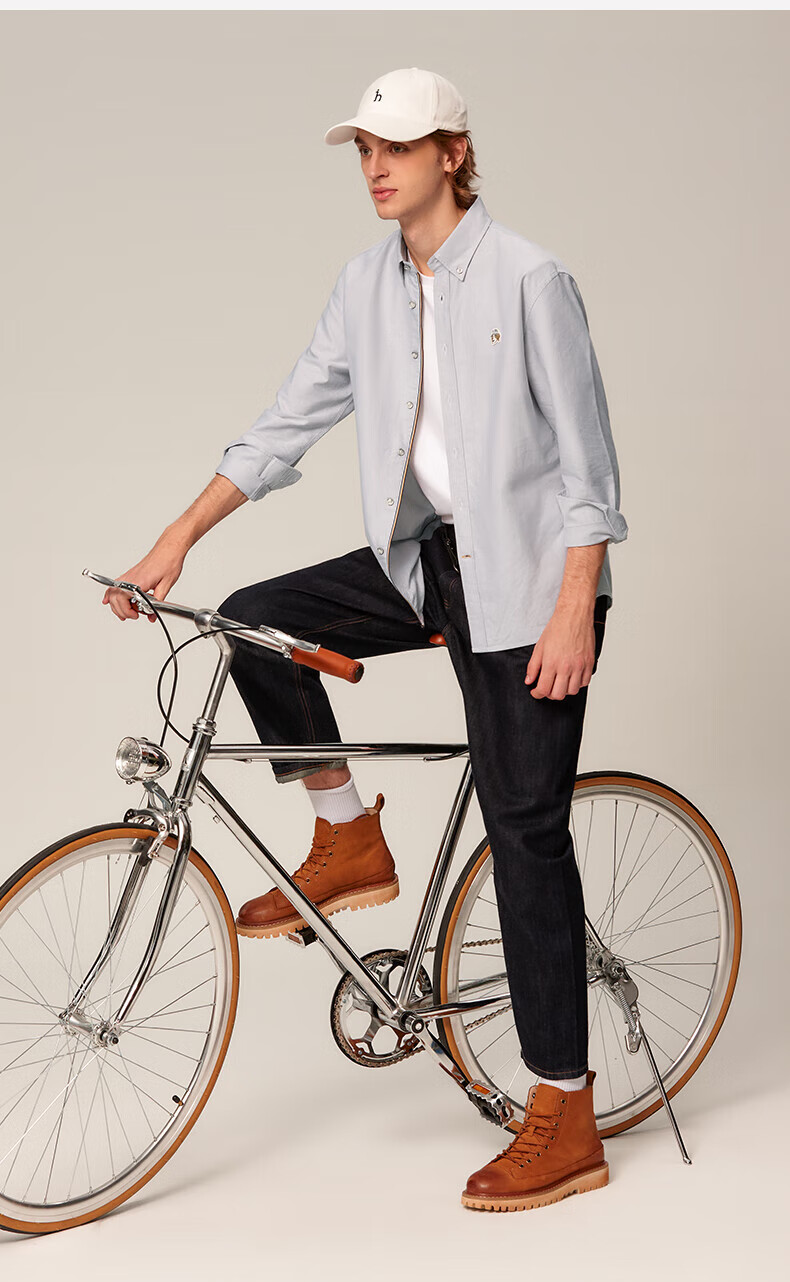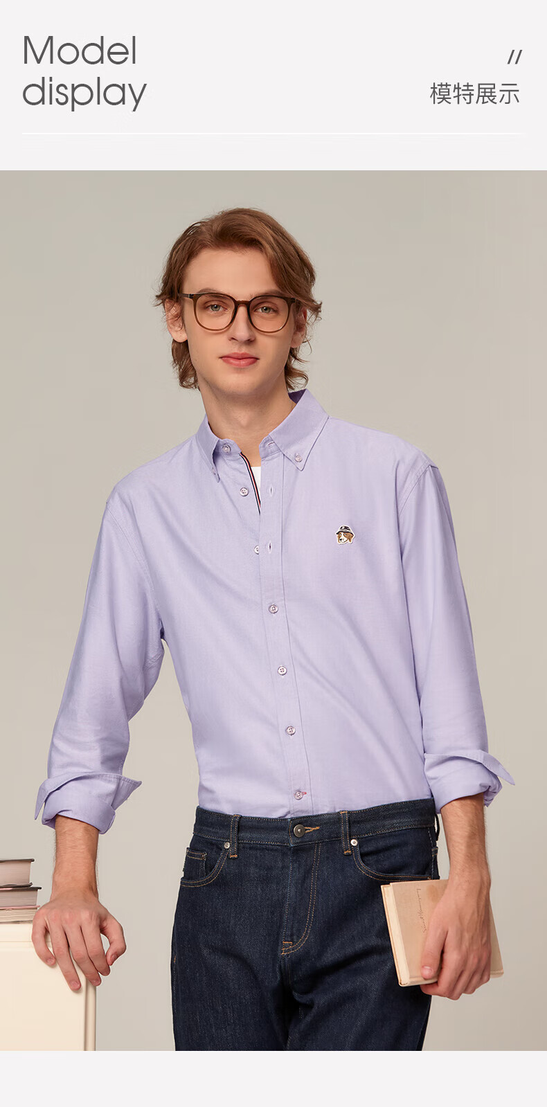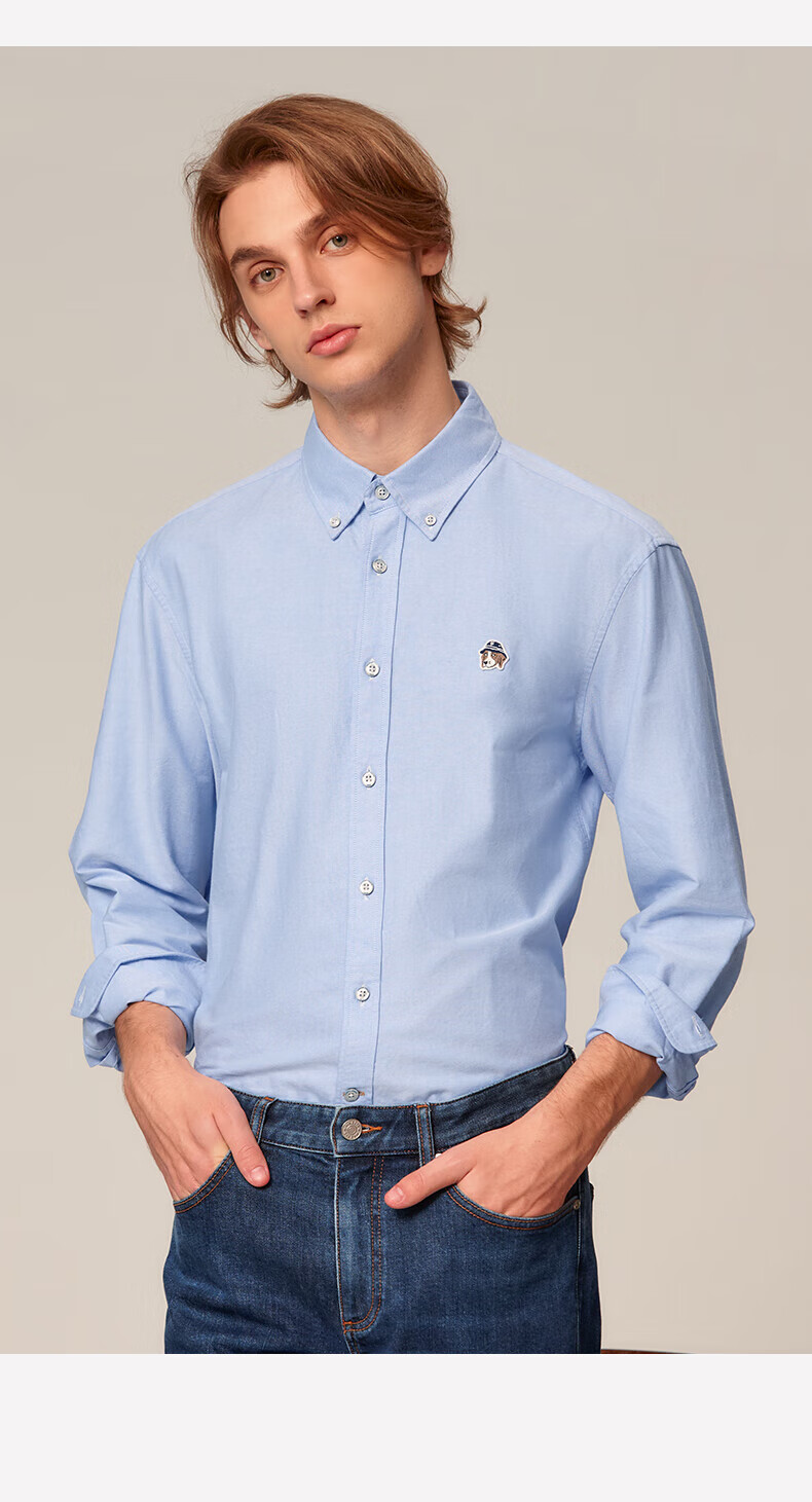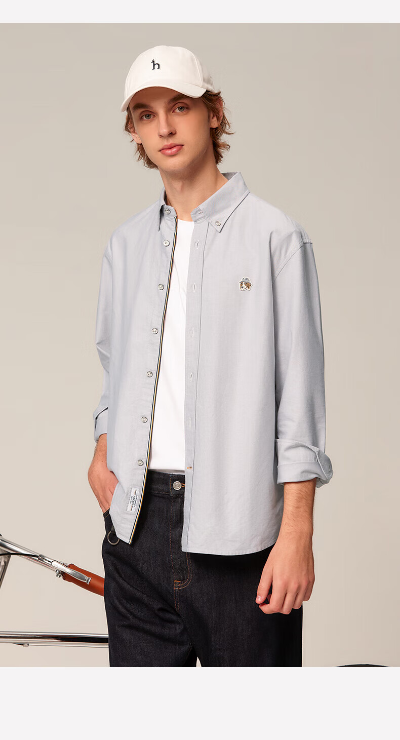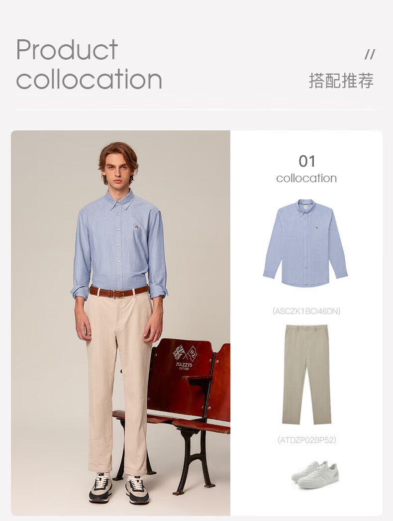 HAZZYS Men's Oxford Long Sleeve Shirt ASCZK1BCI46 Beige OW 175/96A48