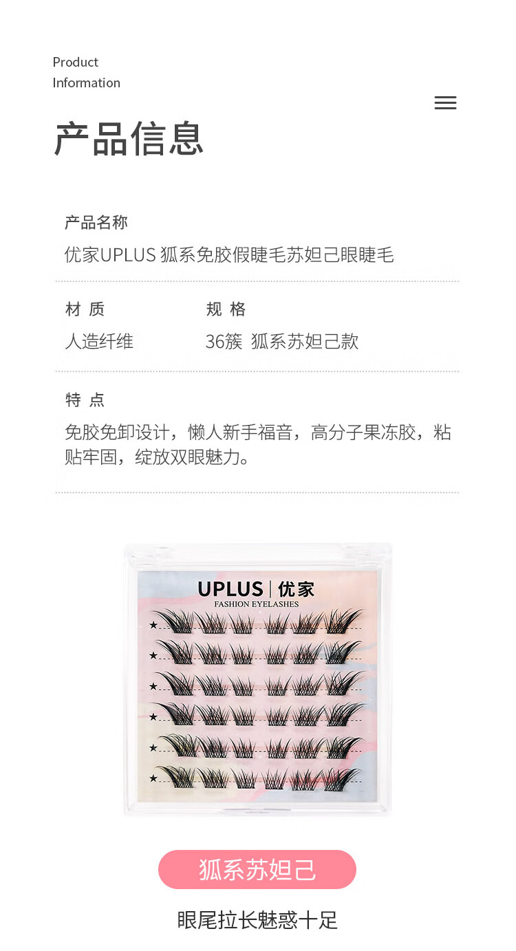 UPLUS fox glue-free false eyelashes Su Daji eyelashes single cluster natural segmented novice