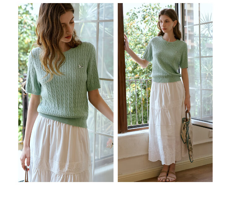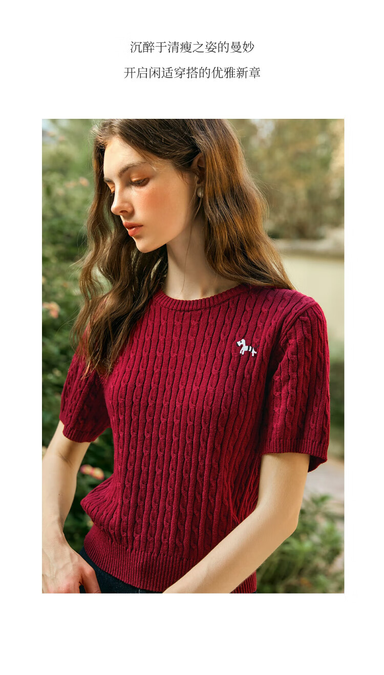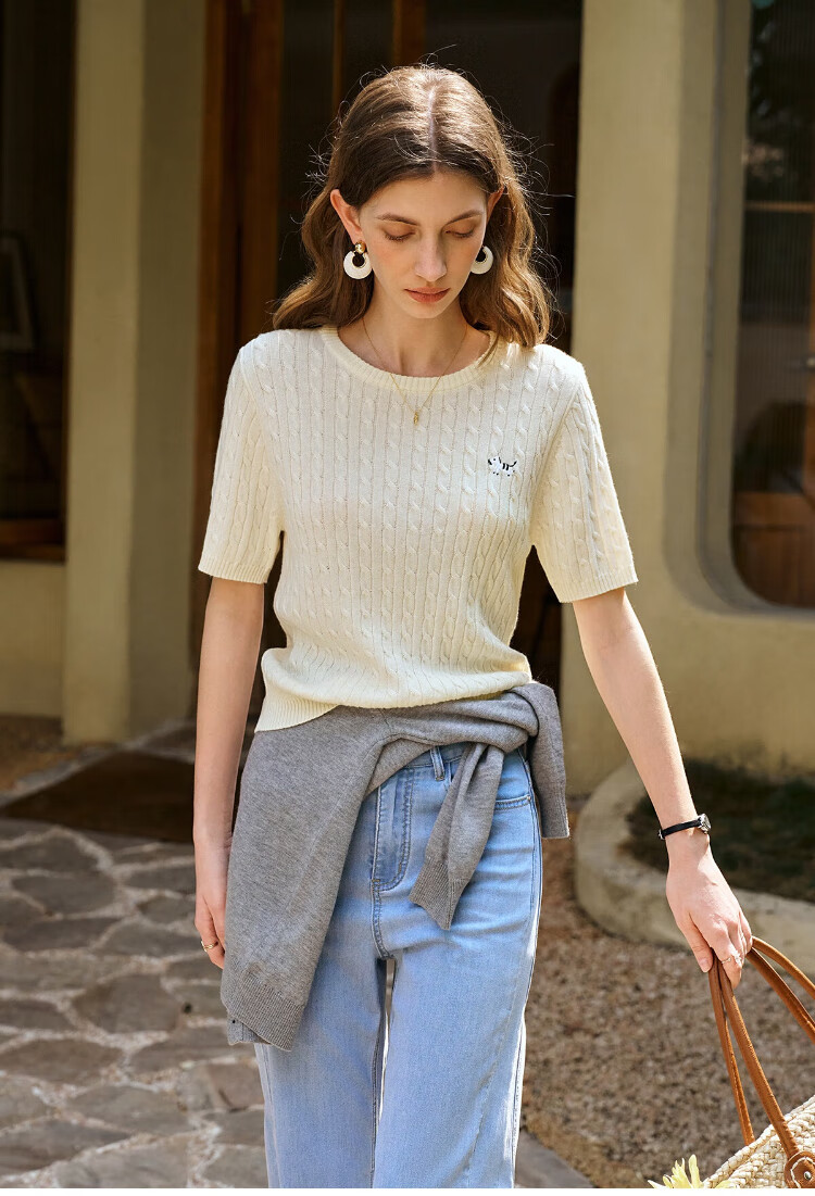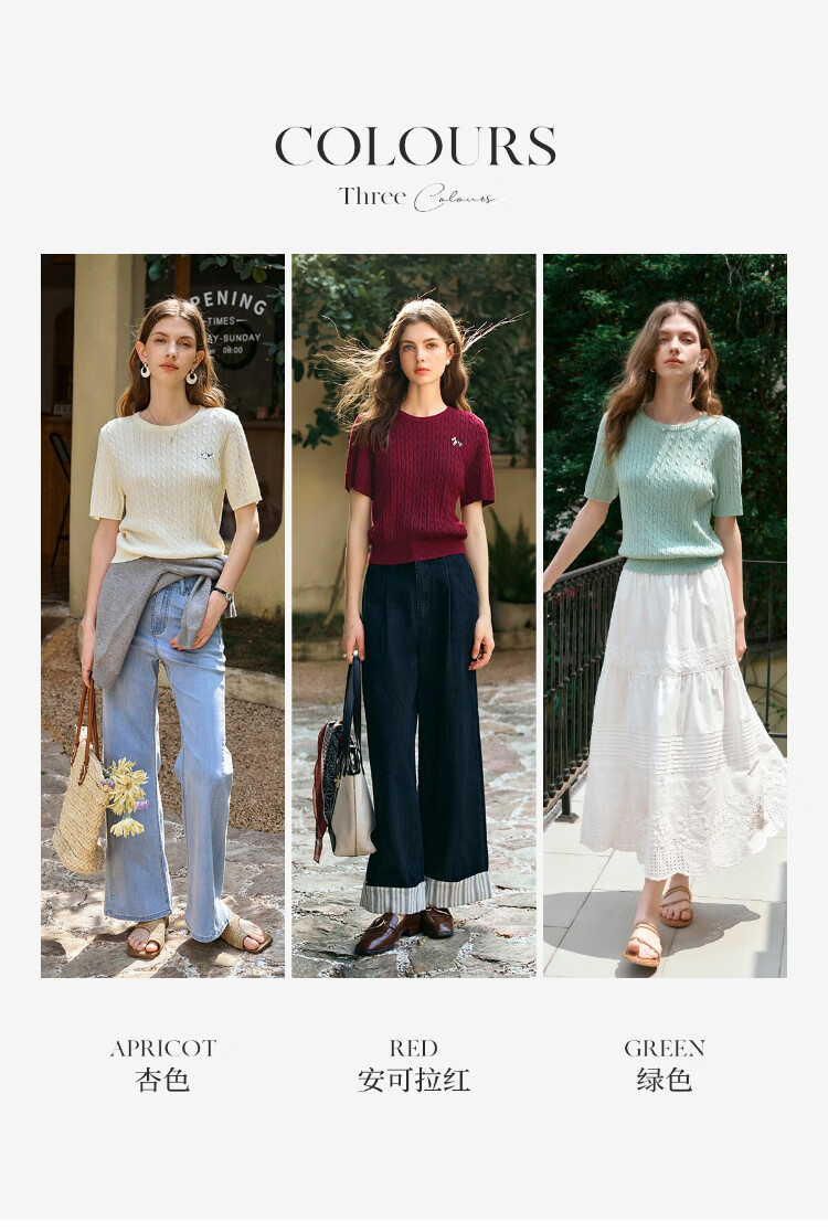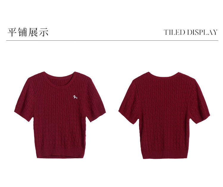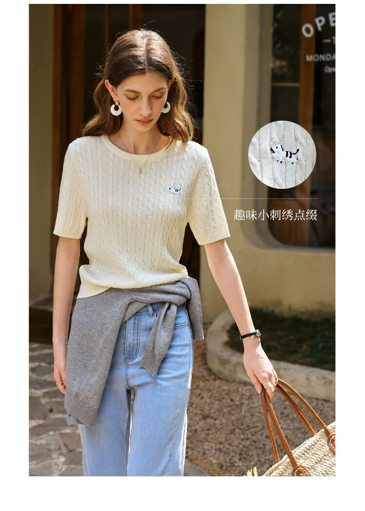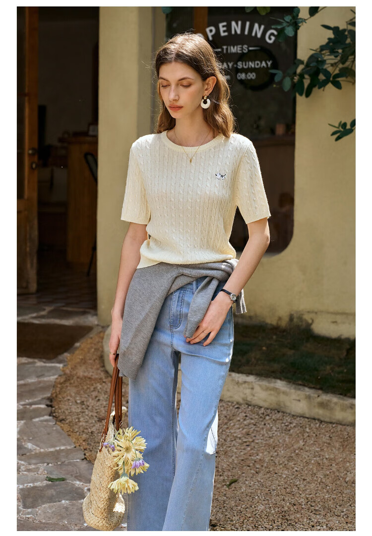 Olrain French short-sleeved T-shirt women's spring 2025 commuting round neck knitted pullover Ancora M