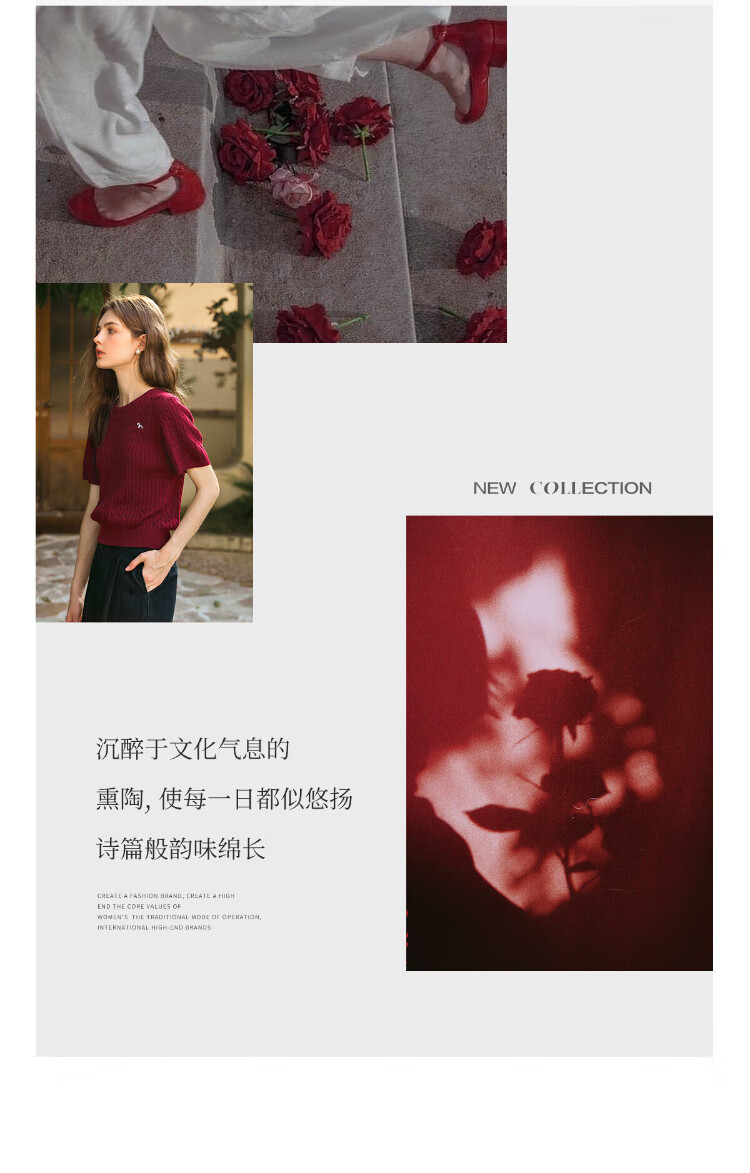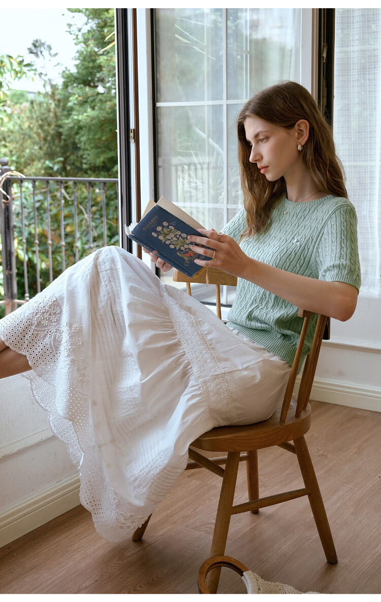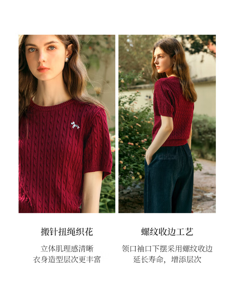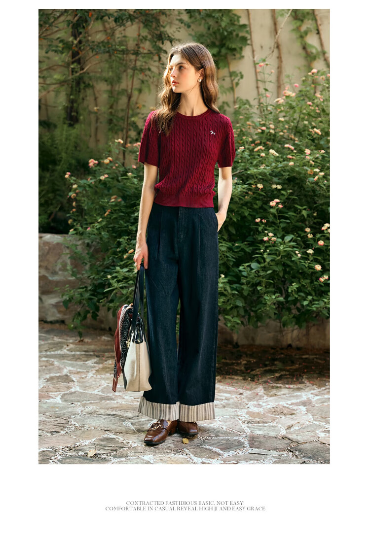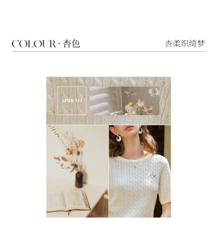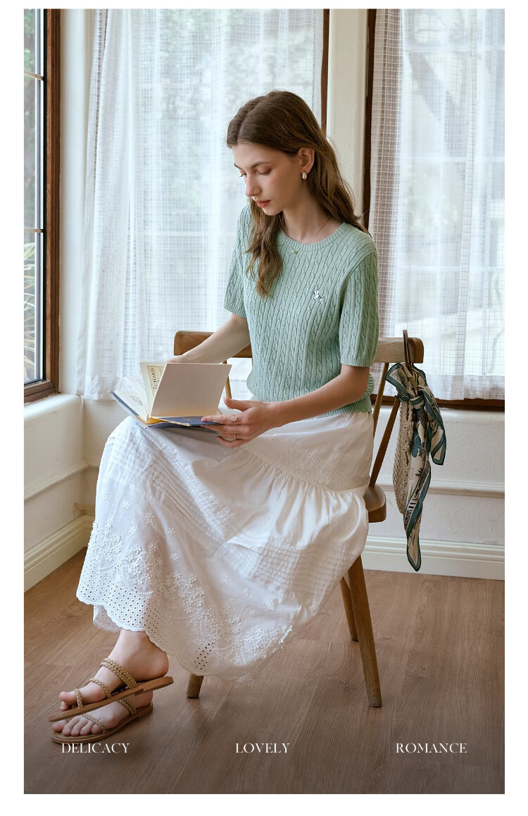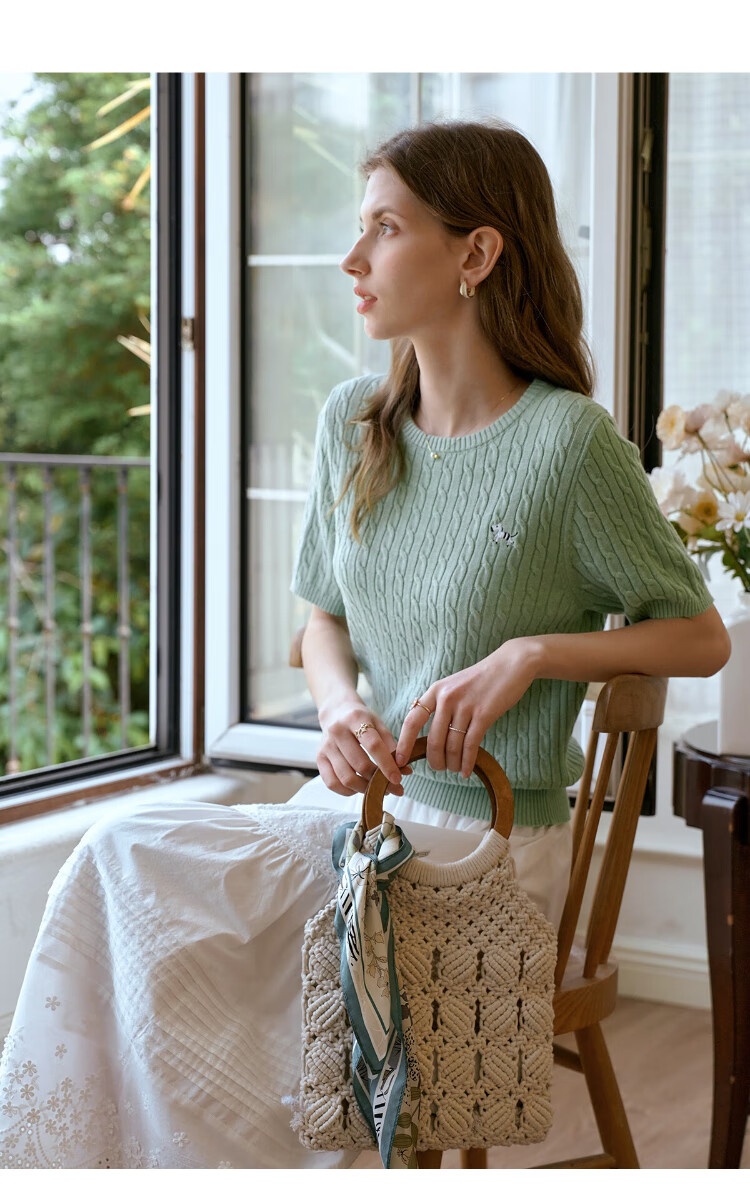 Olrain French short-sleeved T-shirt women's spring 2025 commuting round neck knitted pullover Ancora M