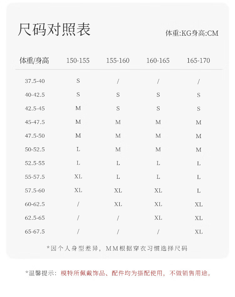 China (cm) 160-165/84-86 165-170 / 88-90 167-172 / 92-96 168-173 / 98-102 170-176 / 106-110