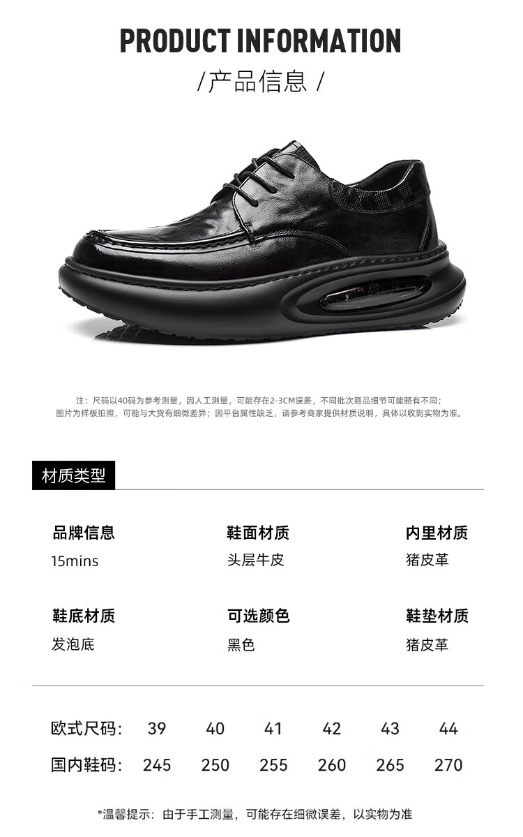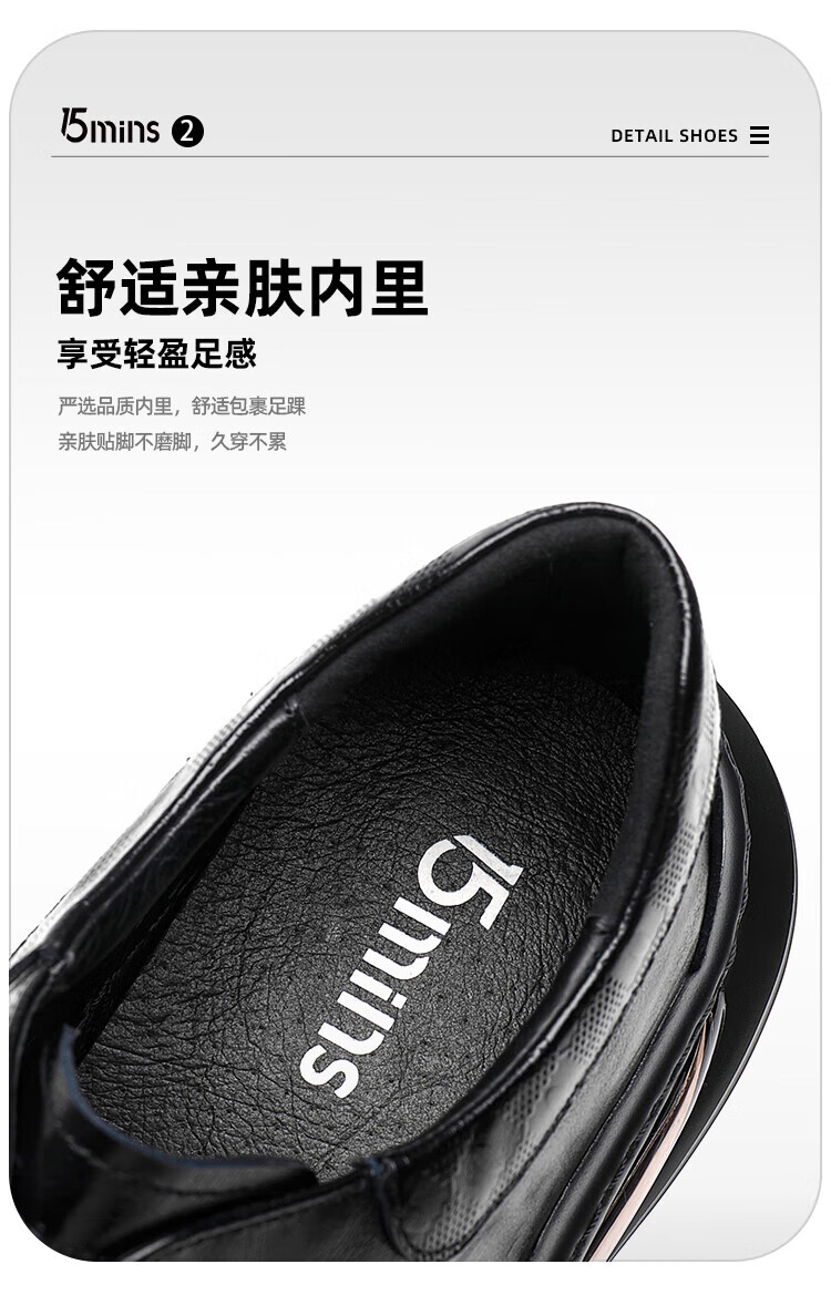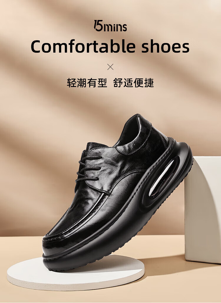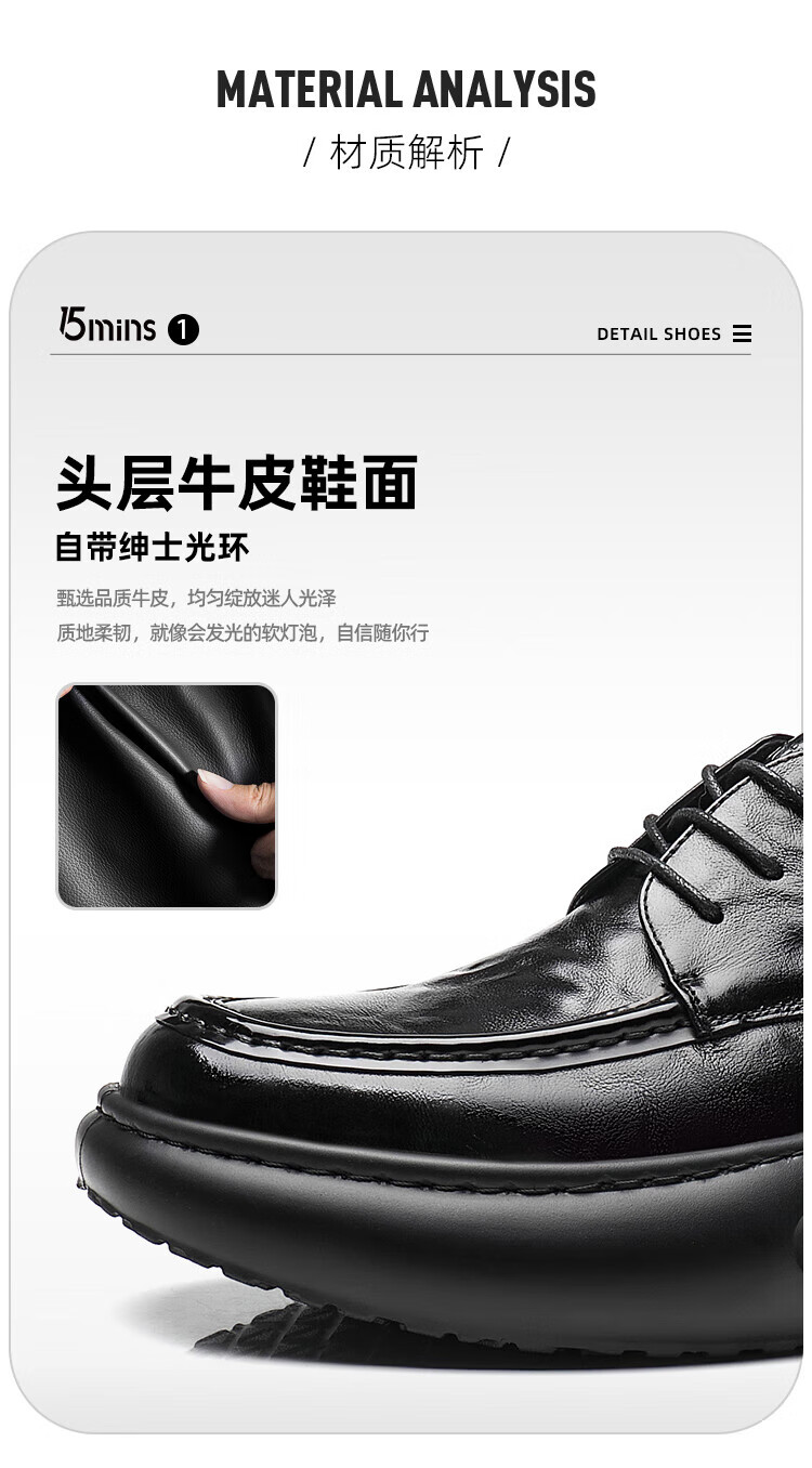 15 minutes first layer cowhide men's comfortable business shoes thick sole increased soft sole soft surface British casual shoes men's shoes E1886