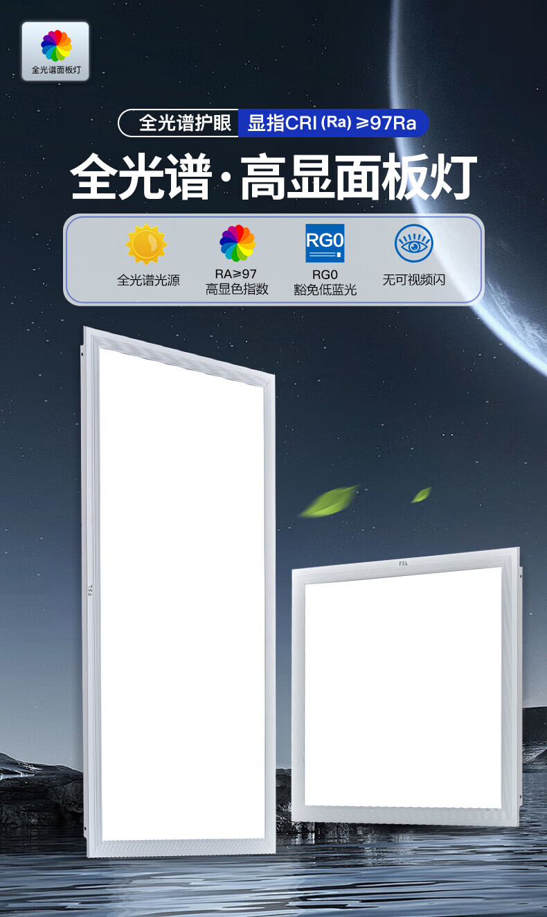 Foshan Lighting (FSL) Ra97 full spectrum integrated ceiling light led panel light aluminum buckle ceiling embedded flat panel light IP40 aluminum silver model 300*300 white light 18W