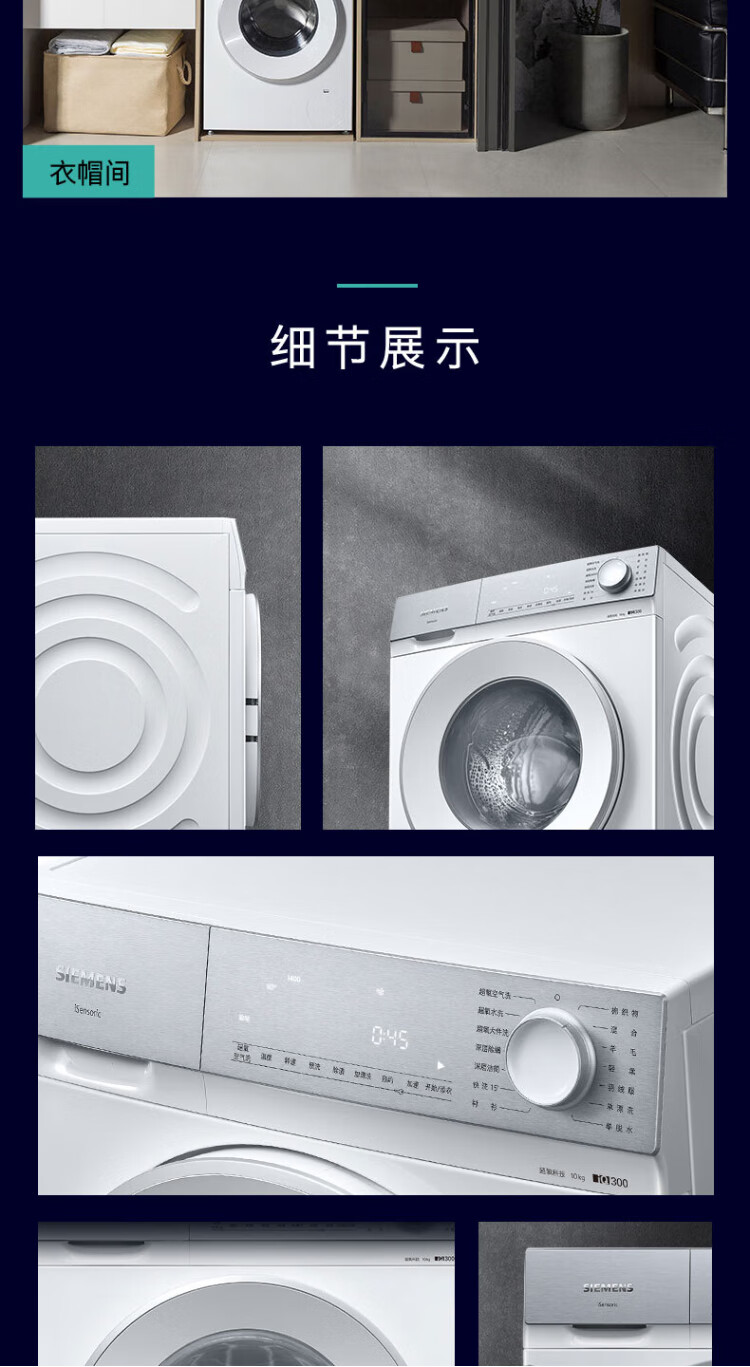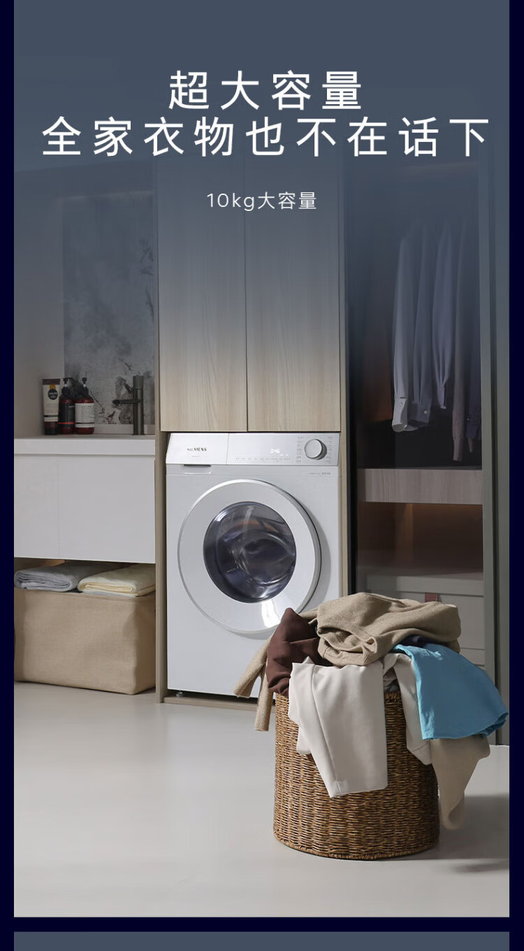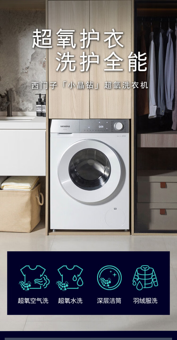 SIEMENS Small Crystal Diamond Super Oxygen 10kg Large Capacity Fully Automatic Drum Washing Machine AI Super Oxygen Air Wash Super Oxygen Odor Elimination Intelligent Stain Removal Efficient Bacteria Removal E00W