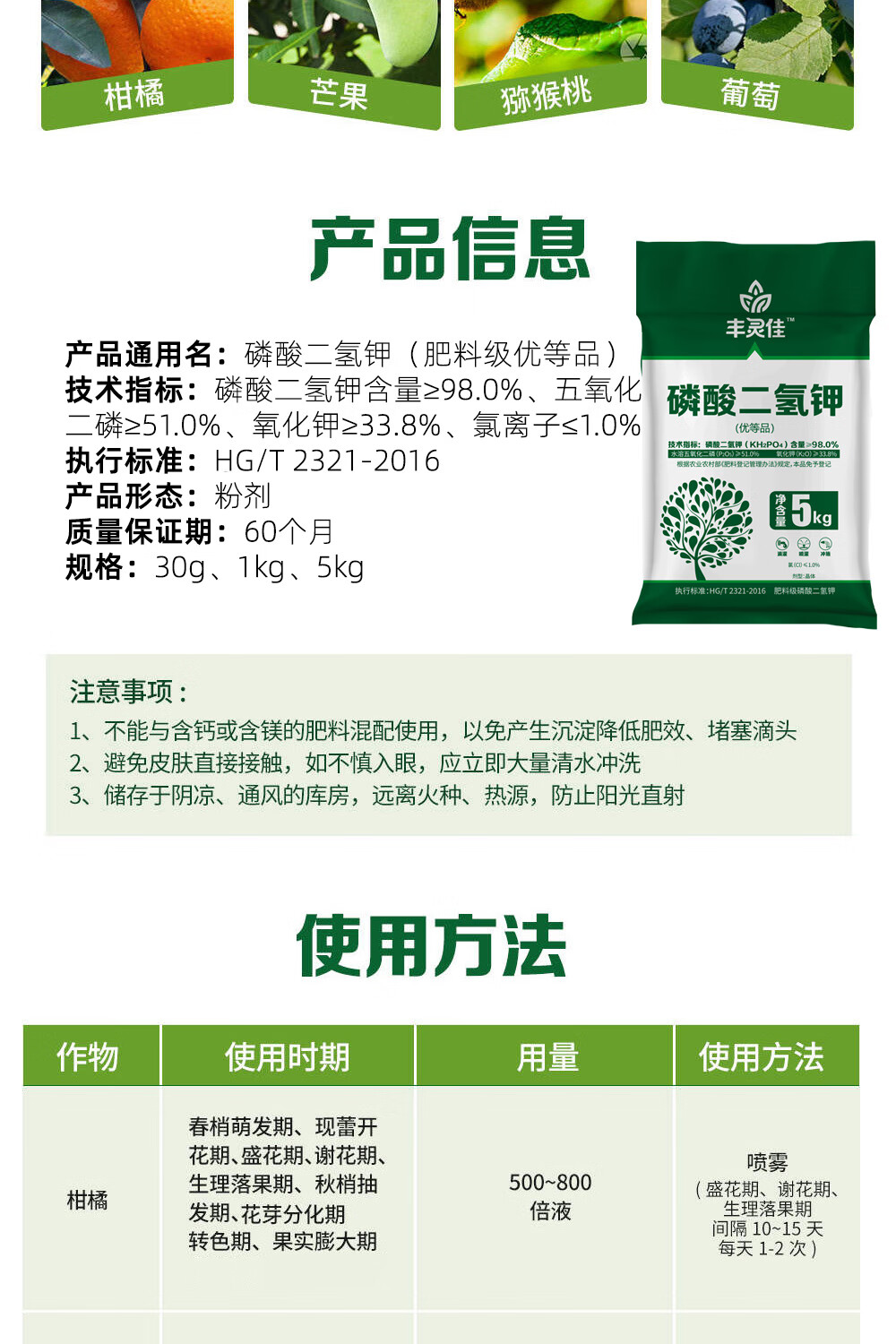 Fenlingjia potassium dihydrogen phosphate foliar fertilizer promotes rooting and flowering, preserves fruit, sweetens and colors agricultural flowers, water-soluble fertilizer 5kg*1 bag