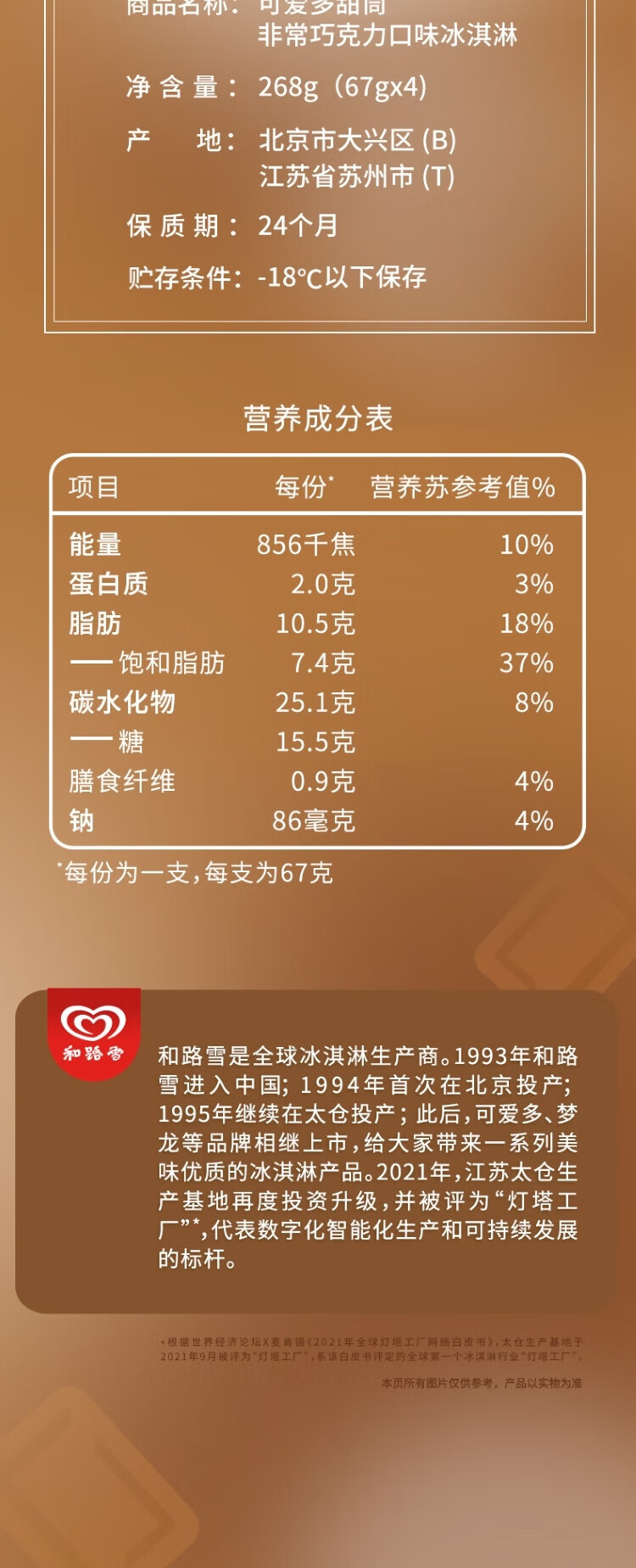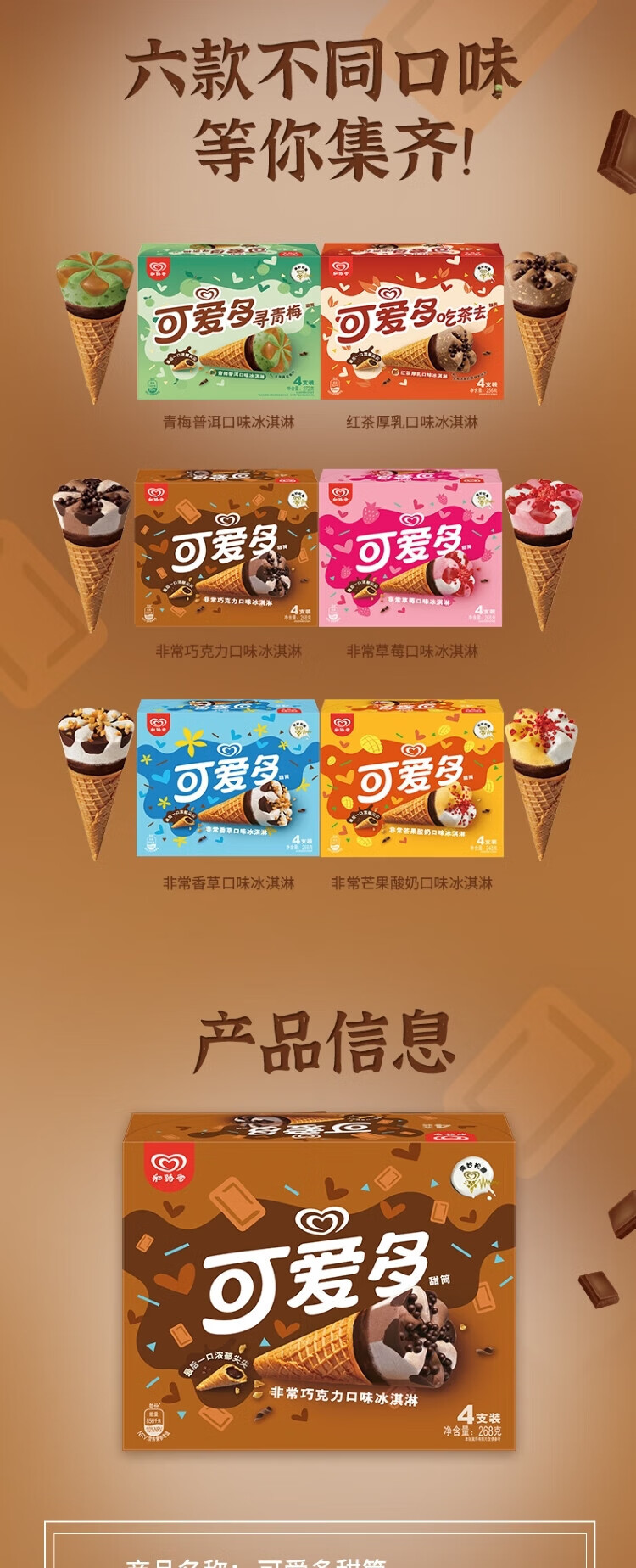 Lovely Chocolate Flavored Ice Cream Cone 67g*4