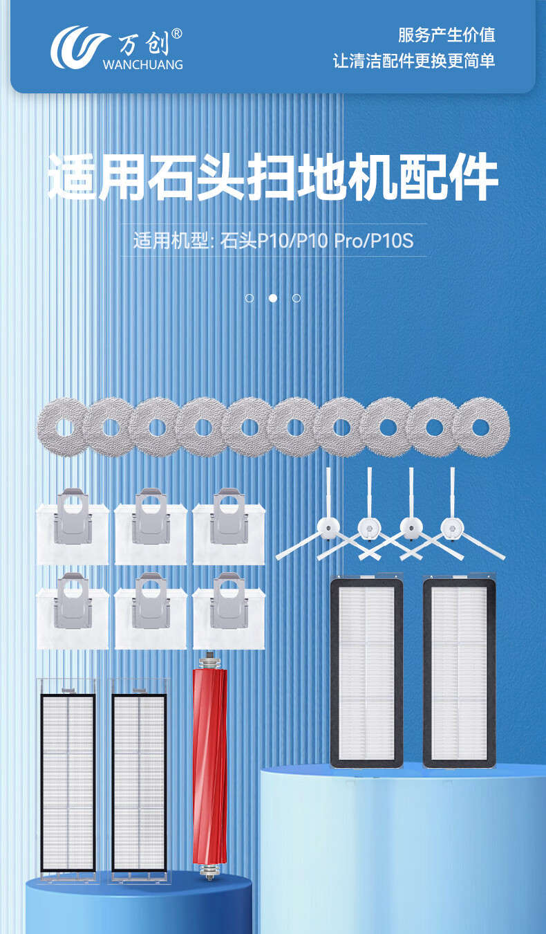 Wanchuang suitable for Roborock sweeping robot accessories P10S/P10 Pro dust bag rag mop roller brush main brush side brush filter cleaning fluid consumable accessories