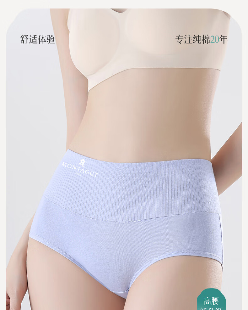 Montagut Women's Underwear Women's High Waist Tummy Control 100% Cotton 10A Grade Antibacterial Bottom Crotch Seamless Butt Lifting Breathable Triangle Shorts