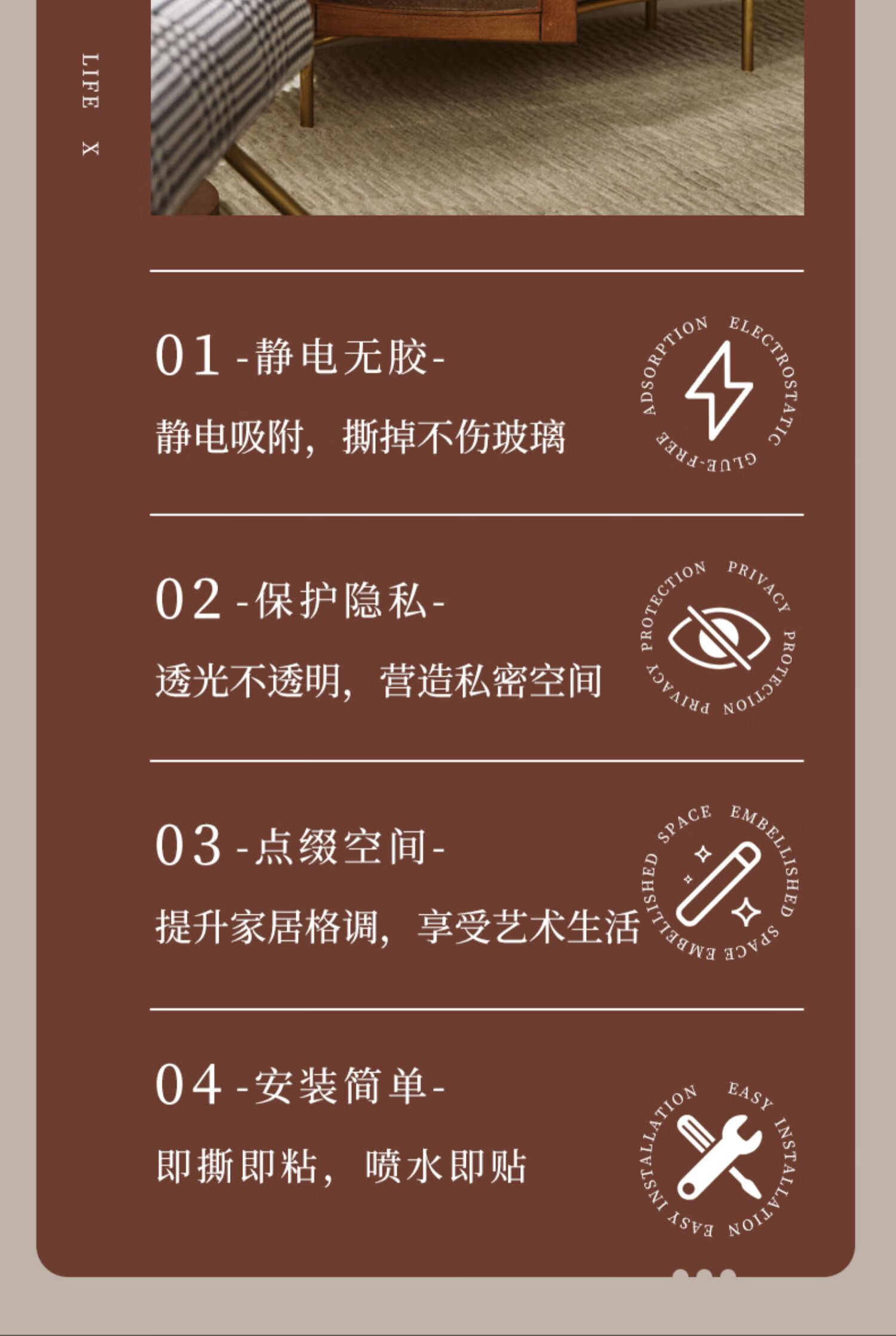 Xiluo retro frosted glass film window sticker bathroom anti-peeping light-transmitting opaque Begonia flower 60*200cm