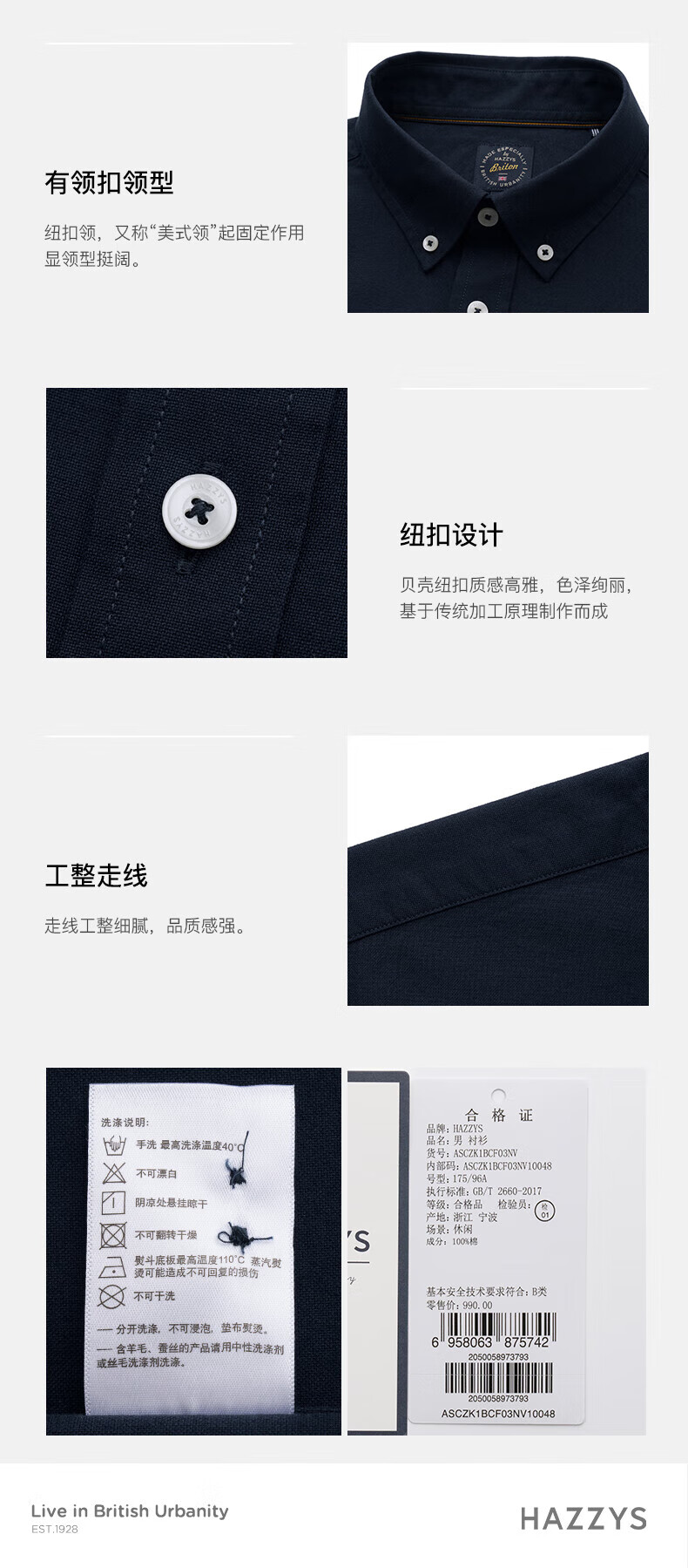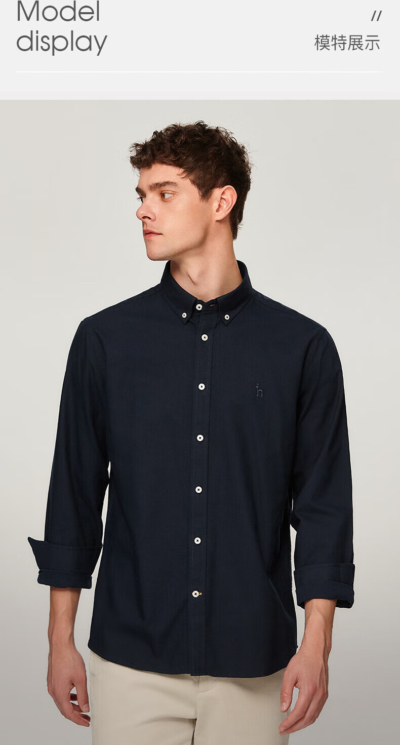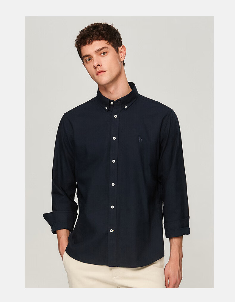 HAZZYS Men's Oxford Commuting Long Sleeve Shirt Men's ASCZK1BCF03 Navy Blue NV 175/96A48