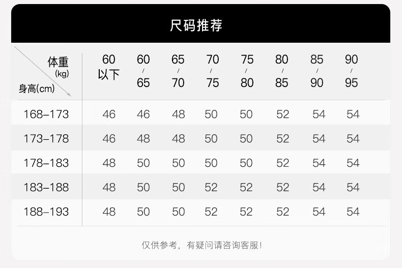 China (cm) 160-165/84-86 165-170 / 88-90 167-172 / 92-96 168-173 / 98-102 170-176 / 106-110