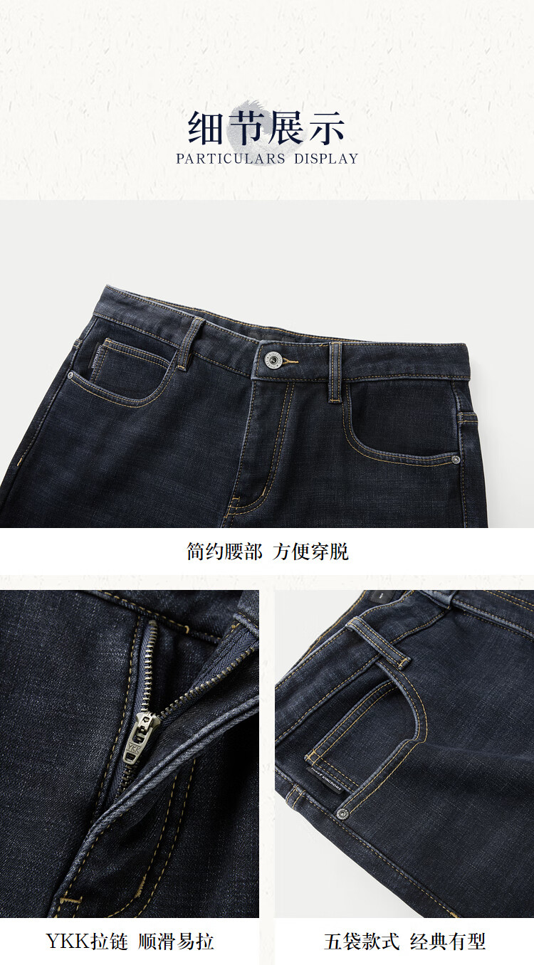 HLA Heilan House velvet jeans men's Romance of the Three Kingdoms five-bag warm pants for men