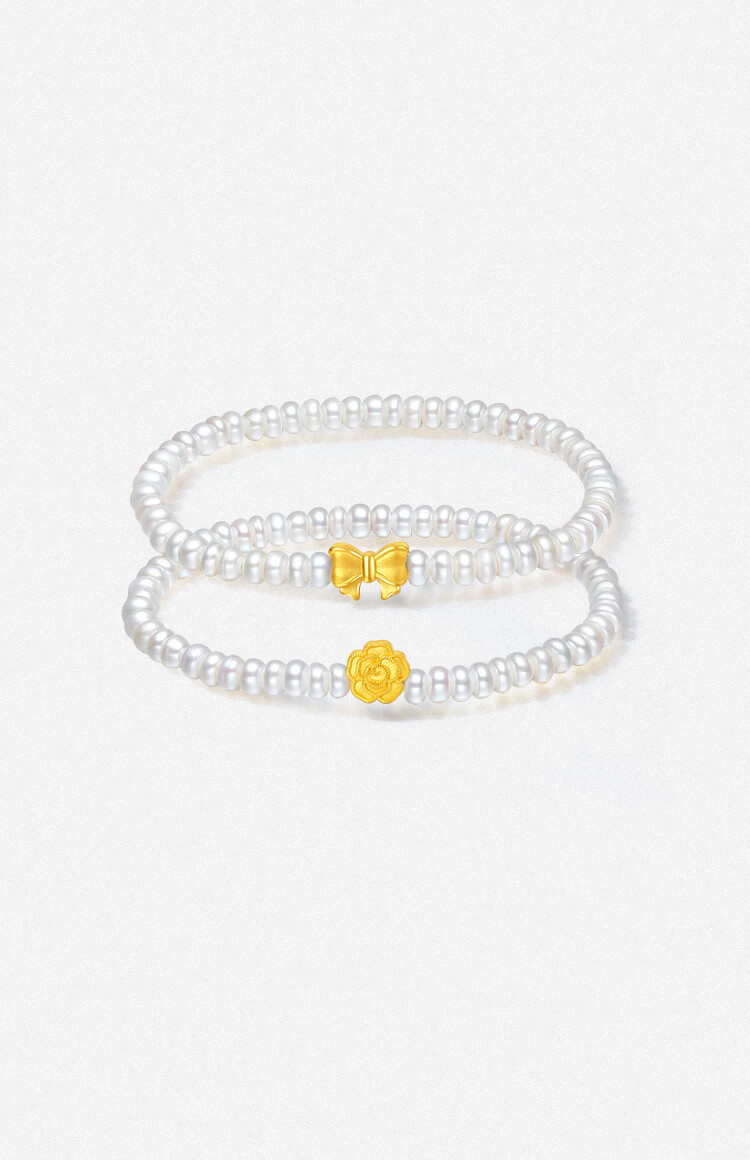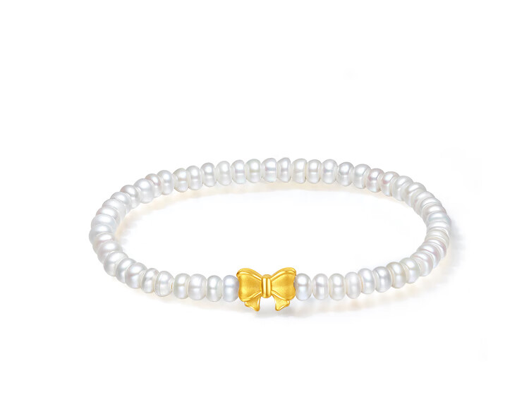 Saturday blessing gold transfer beads pearl bracelet birthday gift for women bow 17cm
