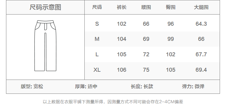Outseam (cm) 99 cm 101.5 cm 104 cm 106.5 cm 109 cm