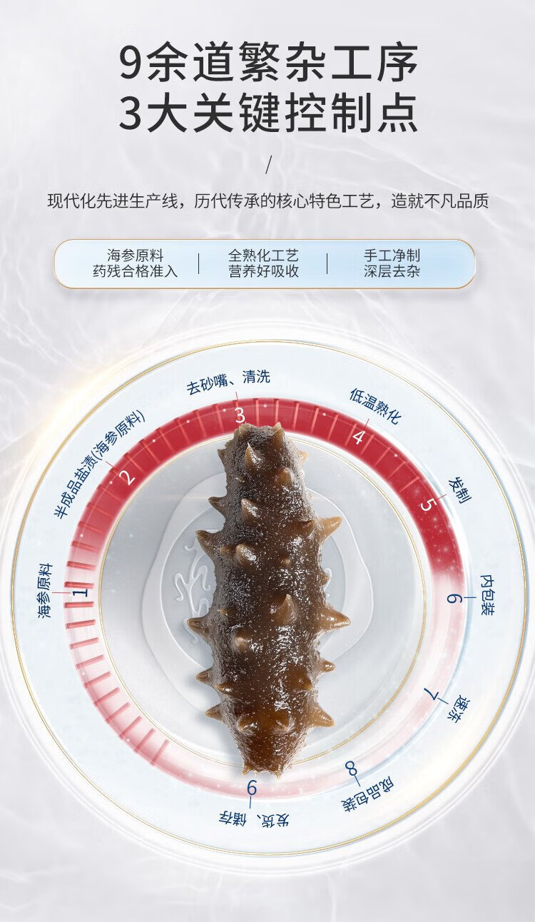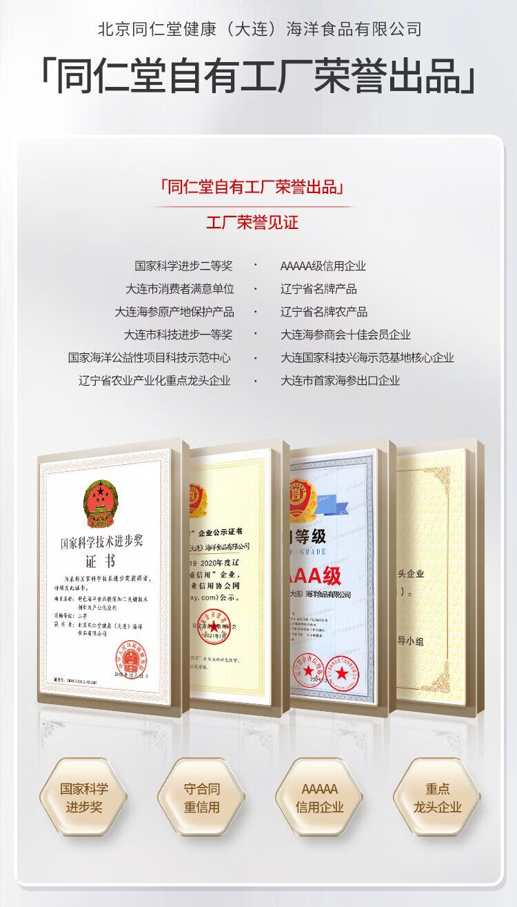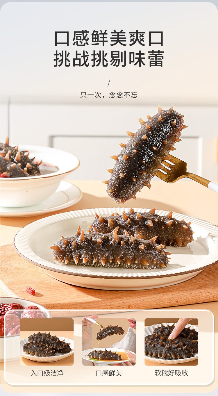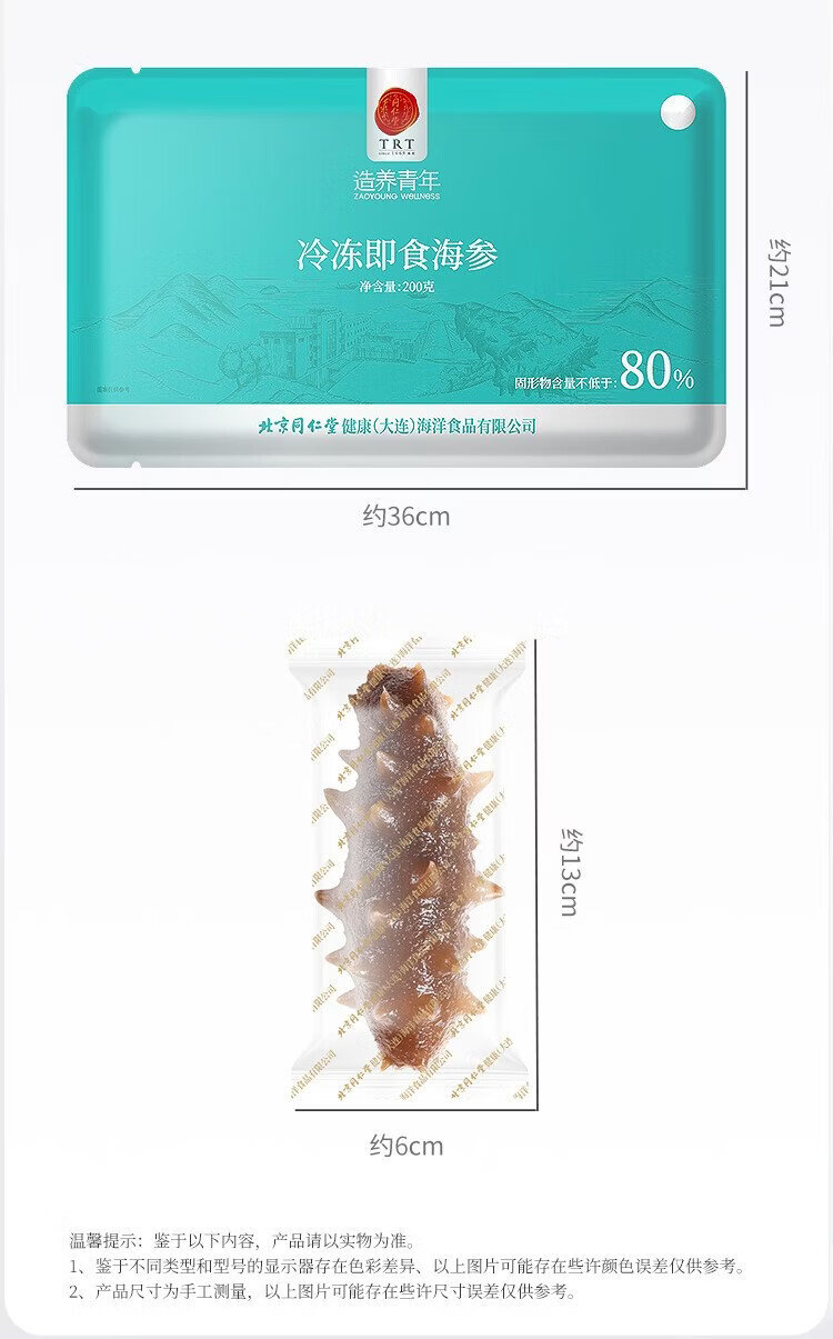 Tongrentang sea cucumber Dalian ready-to-eat sea cucumber individually packaged Liao cucumber 200g 6-8 solids 80% premium sea cucumber