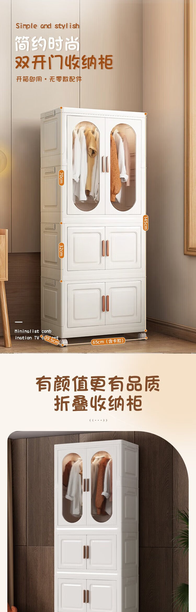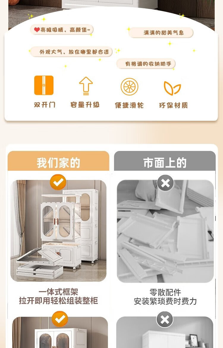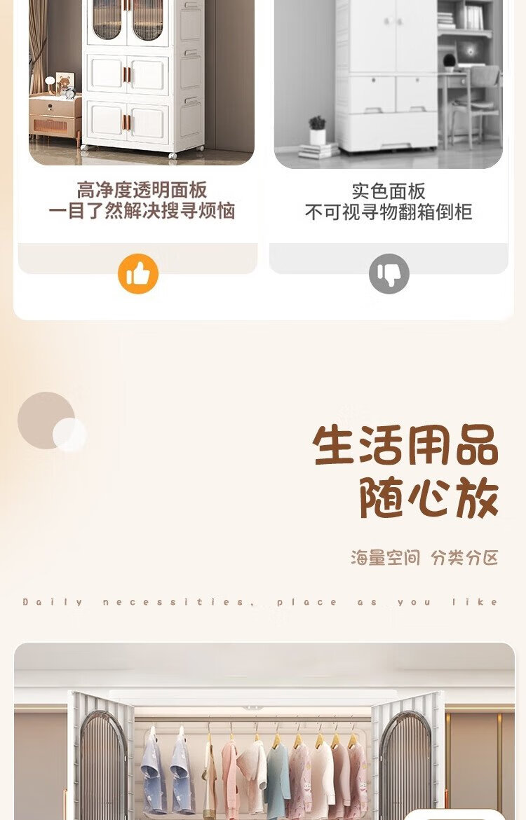 Anya simple wardrobe bedroom cabinet baby wardrobe rental room folding installation-free storage locker 2 layers 1 cabinet