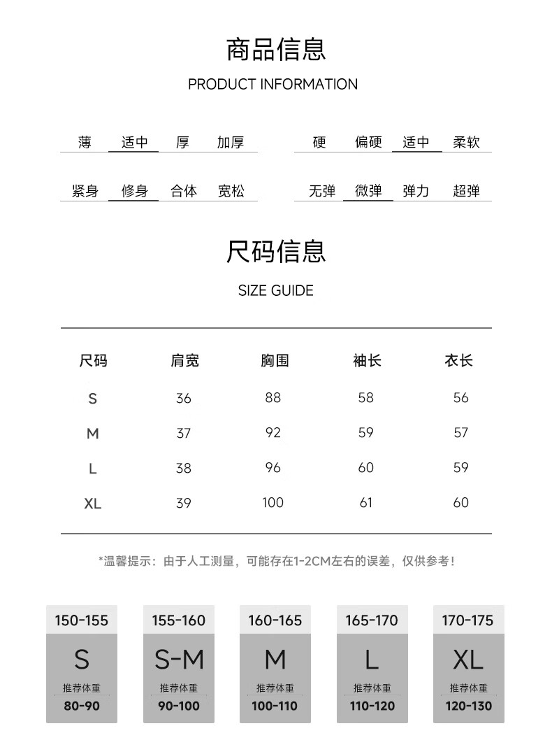 China (cm) 160-165/84-86 165-170 / 88-90 167-172 / 92-96 168-173 / 98-102 170-176 / 106-110