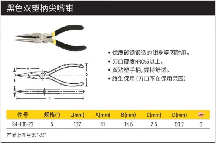 Stanley (STANLEY) black double plastic handle needle nose pliers electrician needle nose clamping pliers wire cutter 5 inches 84-100-23