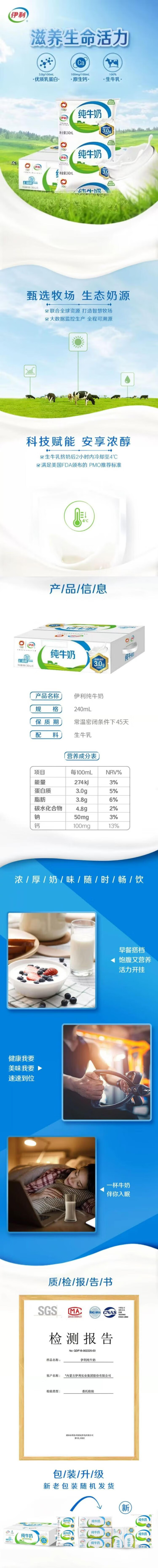 Yili sterile pillow pure milk 240ml*16 full box