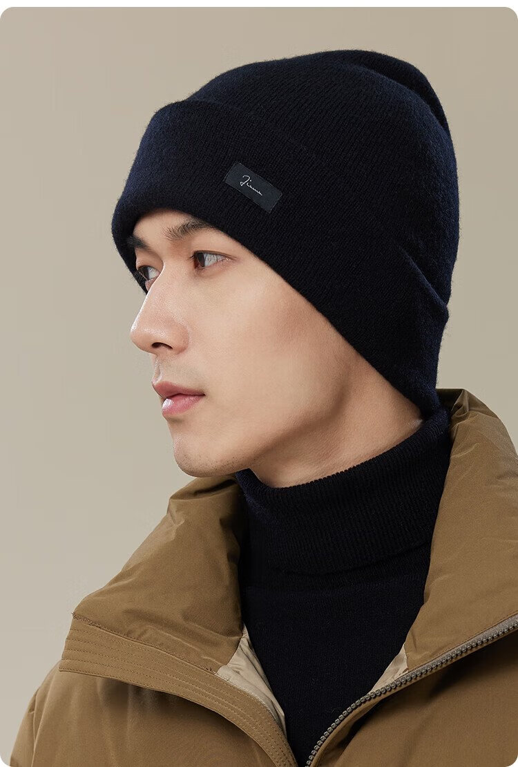 JIUMU pure wool hat men's autumn and winter warm wool hat thickened men's winter hat knitted hat winter ear protection cold hat