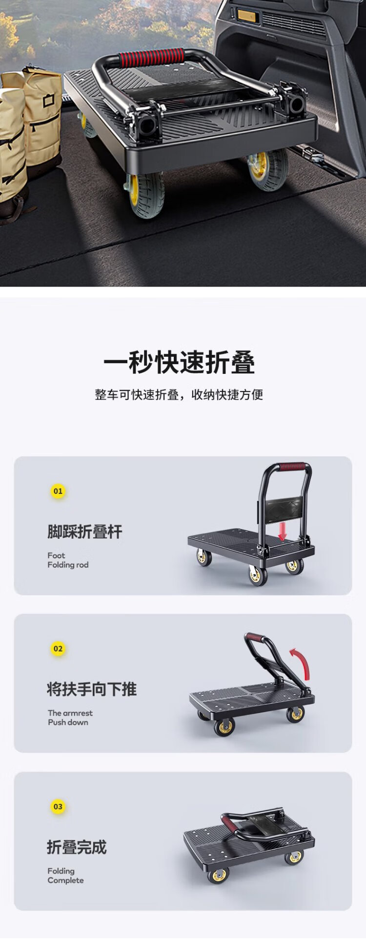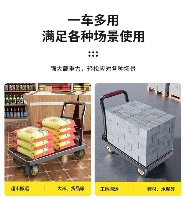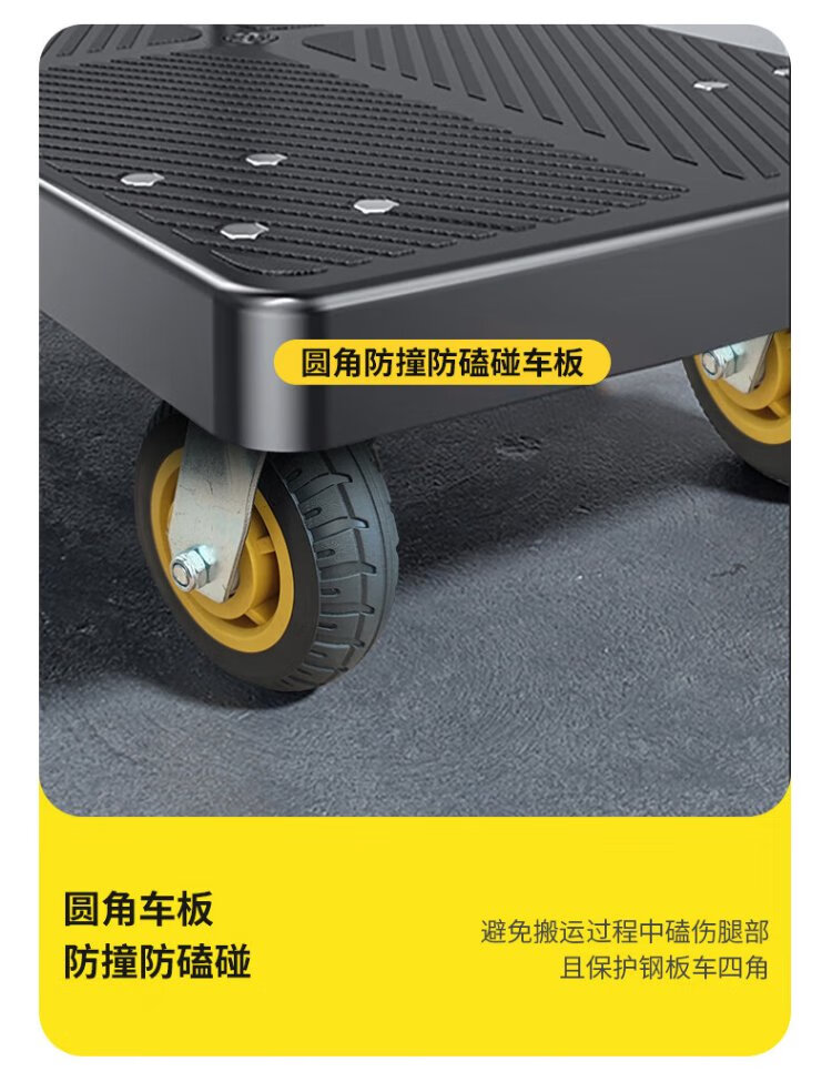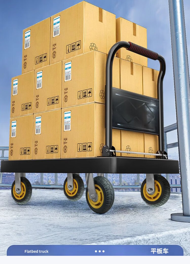 Work partner small trolley flat trolley 90*60cm5 inch beacon wheel labor-saving wear-resistant 1000Jin Jin is equal to 0.5kg decoration small trailer handling hand truck pull folding