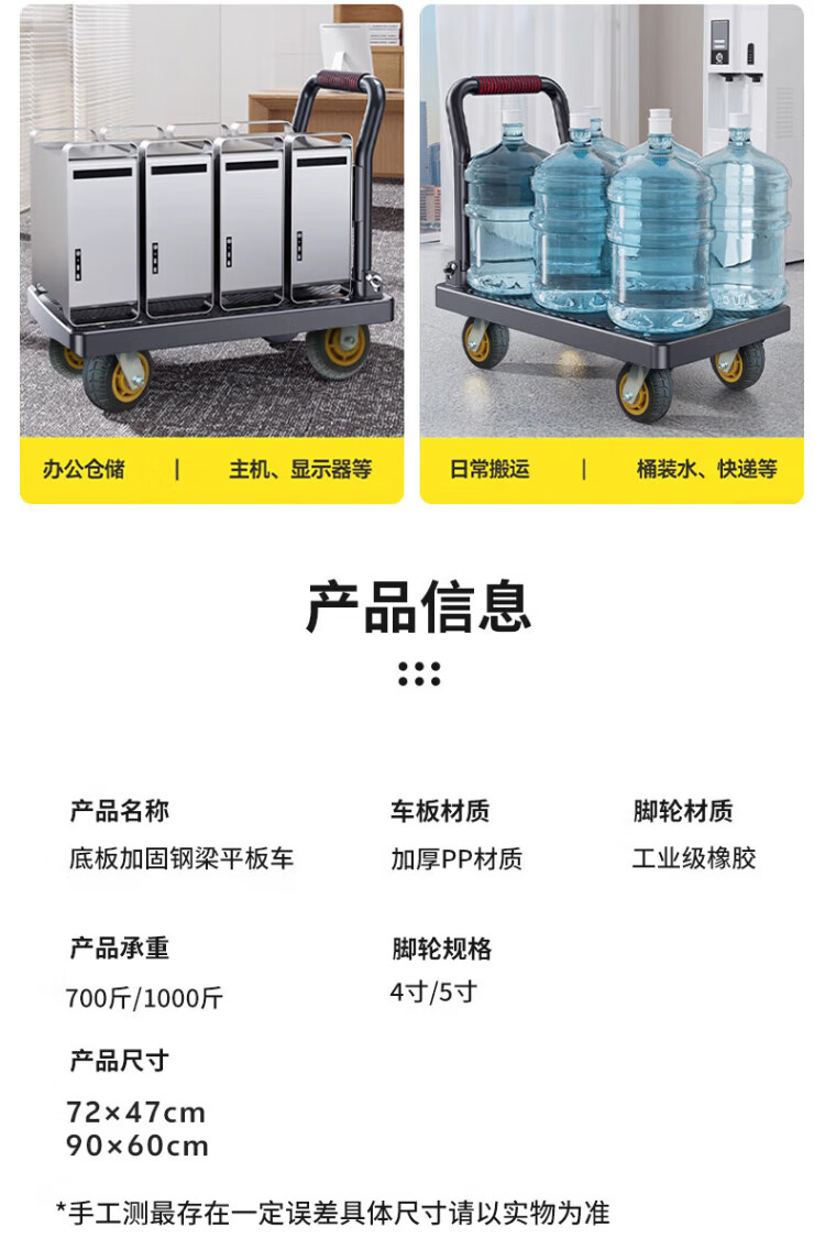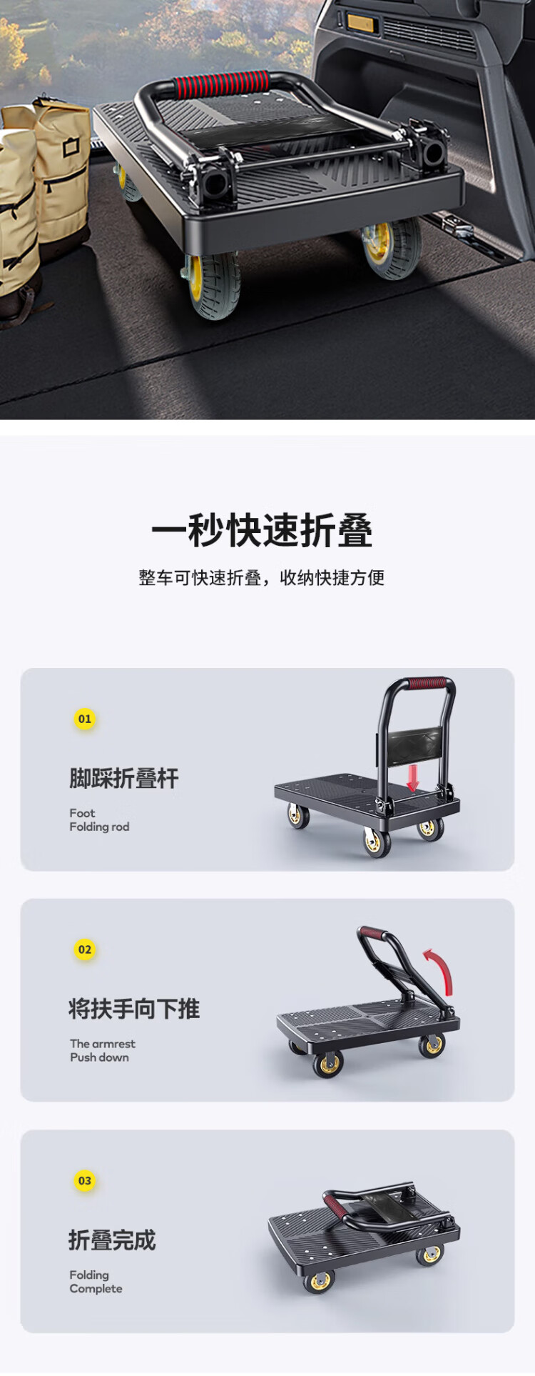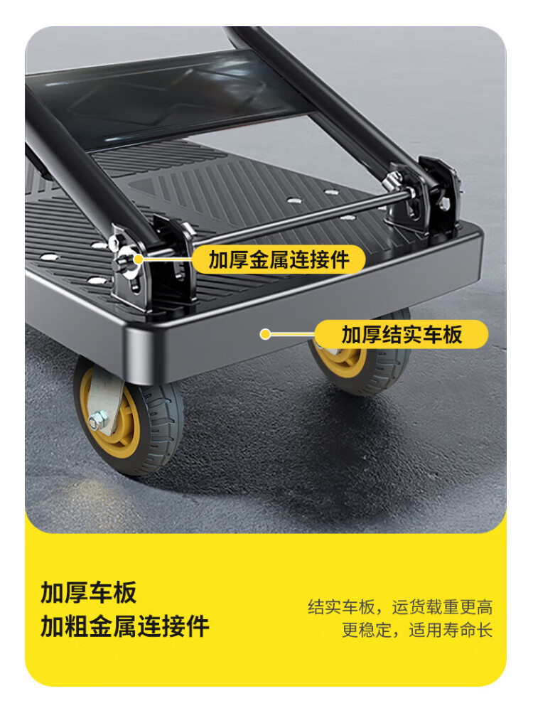 Work partner small trolley flat trolley 72*47cm 4 inch beacon wheel labor-saving wear-resistant 700Jin Jin is equal to 0.5kg decoration small trailer handling hand truck pull folding