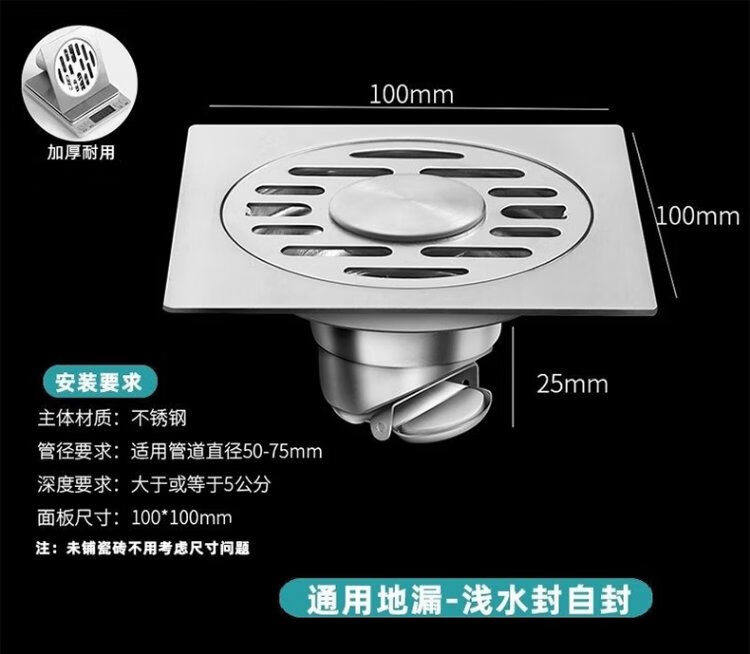 Andatong floor drain dry area sealing cover washing machine bathroom bathroom balcony shower special two-in-one drainage anti-odor anti-insect anti-blocking anti-reverse artifact dual-purpose stainless steel floor drain