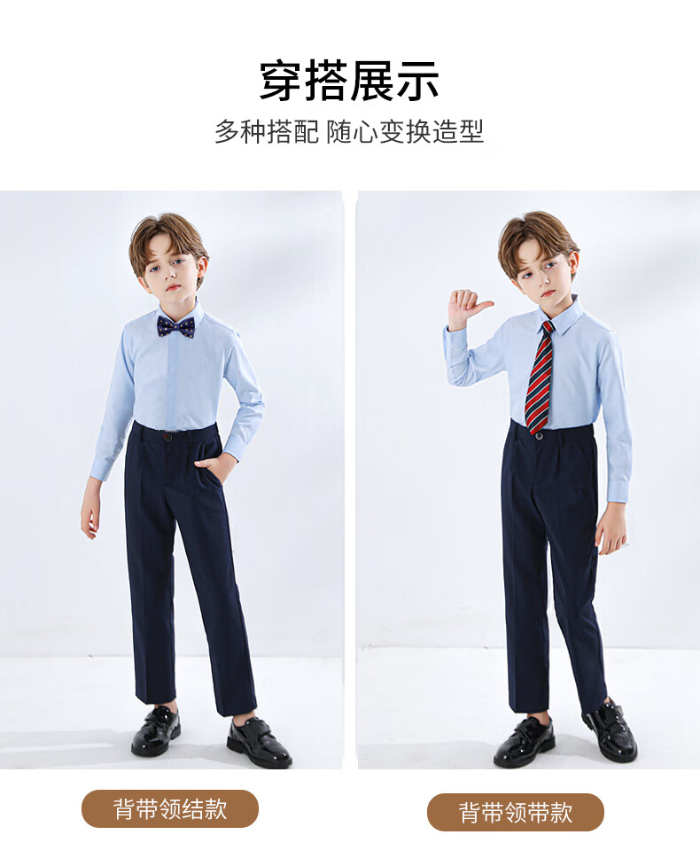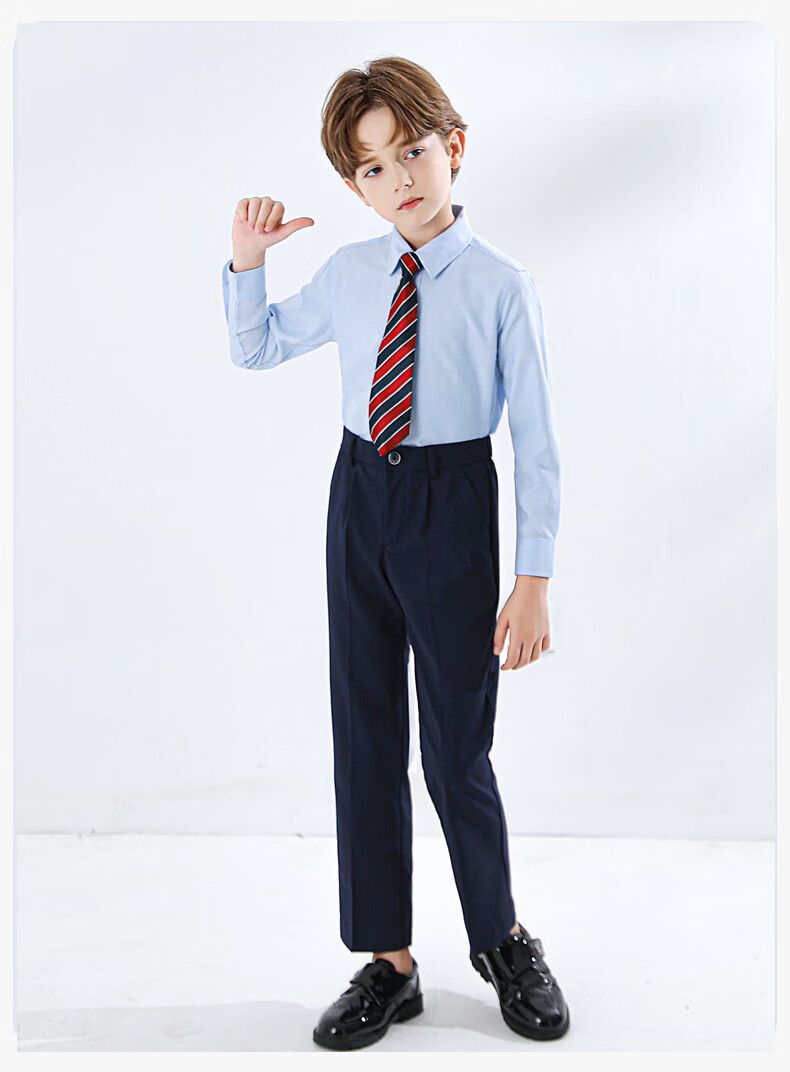 Yinuobang children's shirt long-sleeved blue boys and girls shirt suit shirt blue size 140