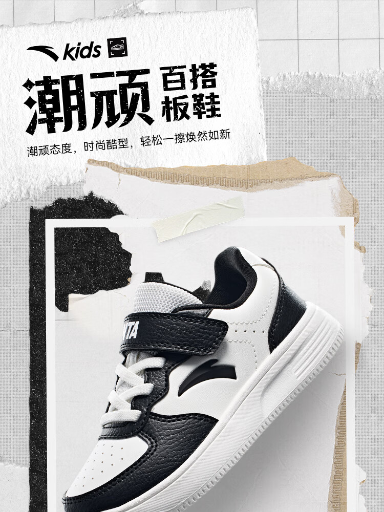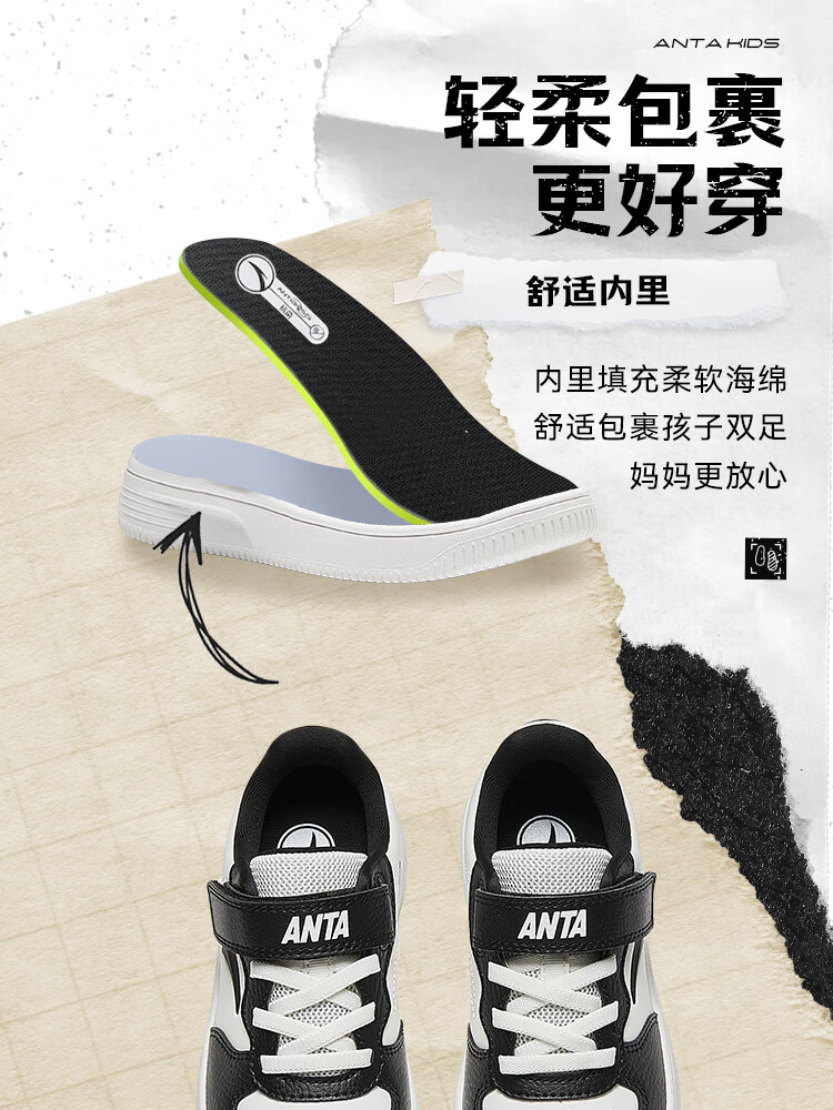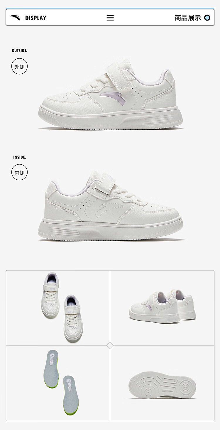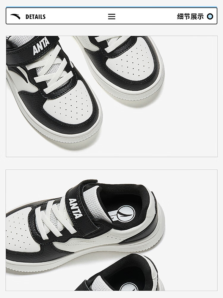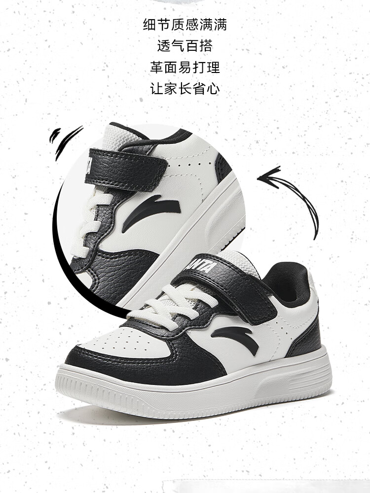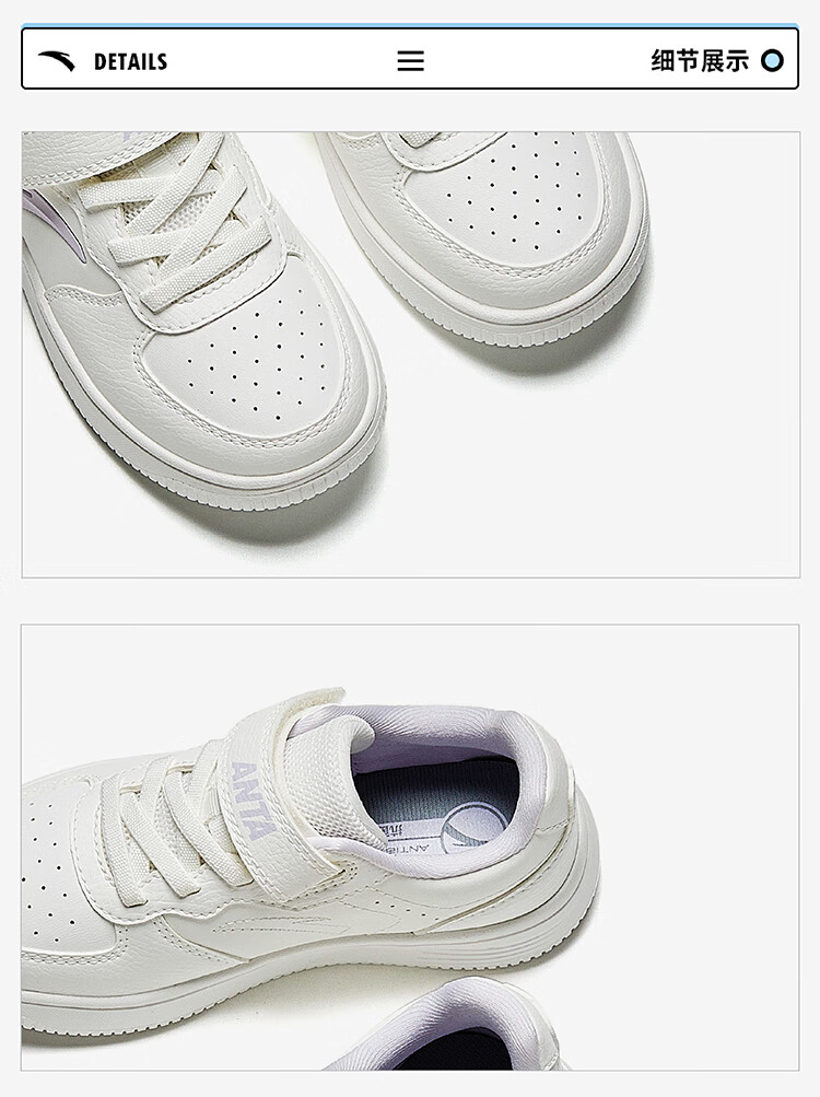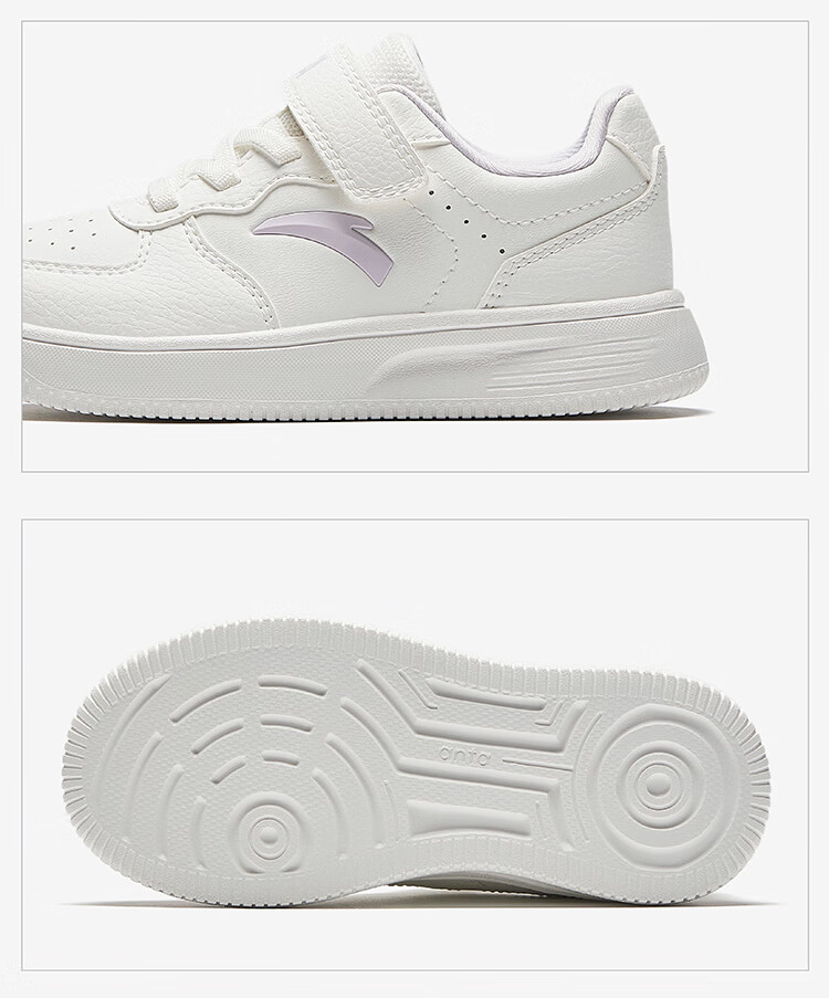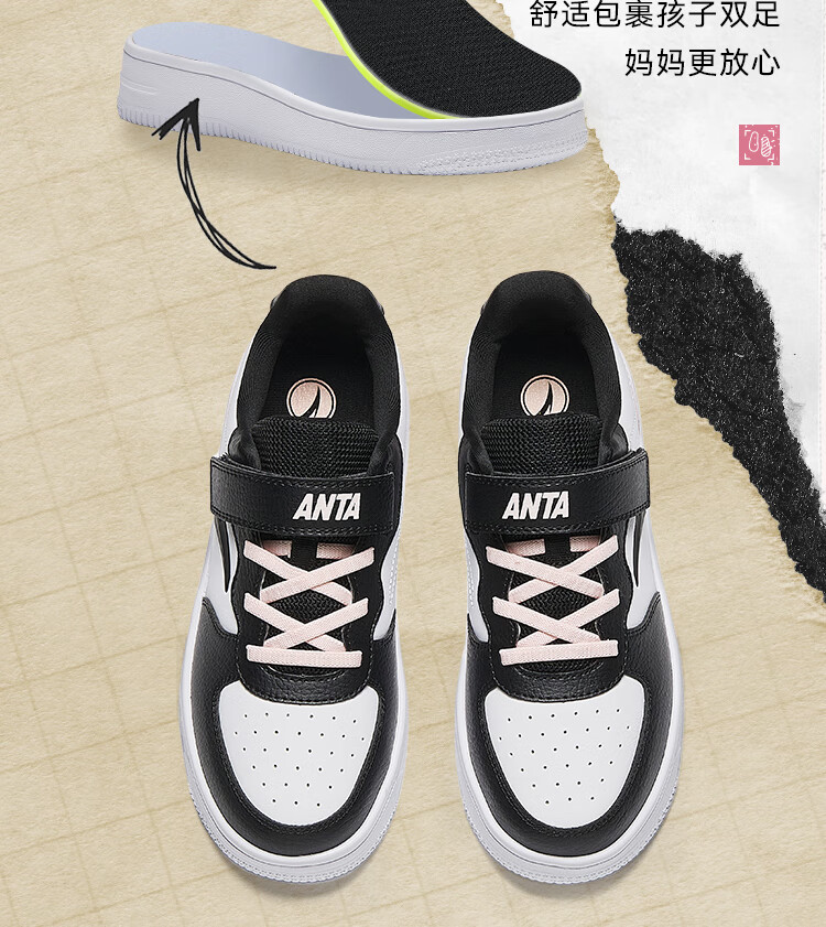 Anta children's sports shoes boys' Velcro campus white shoes low-cut sneakers A12449988