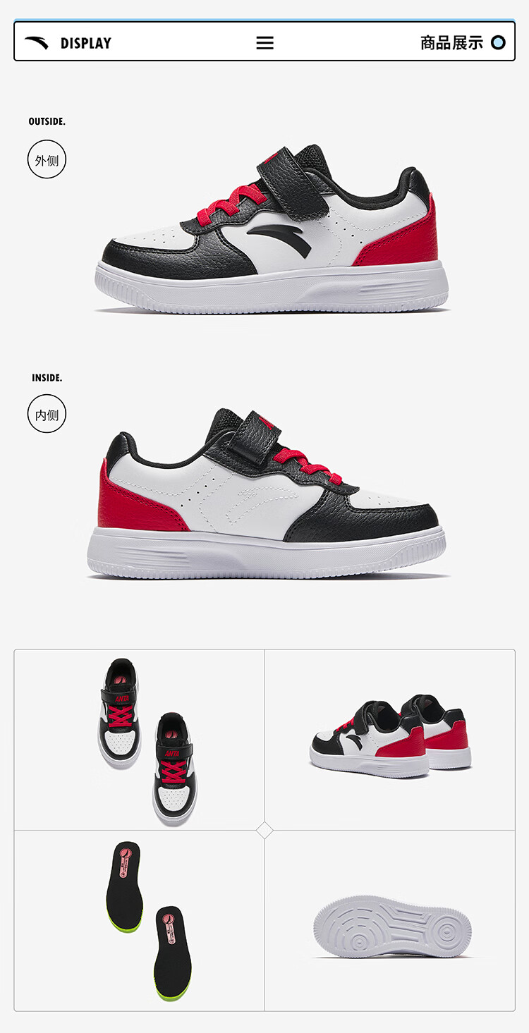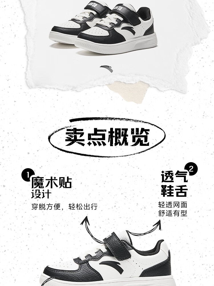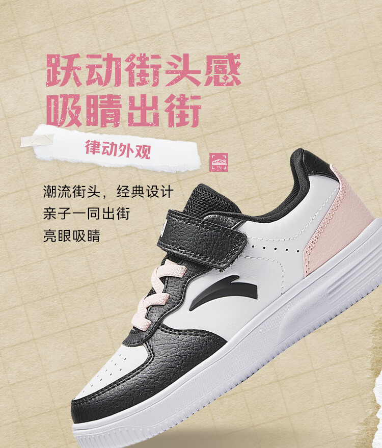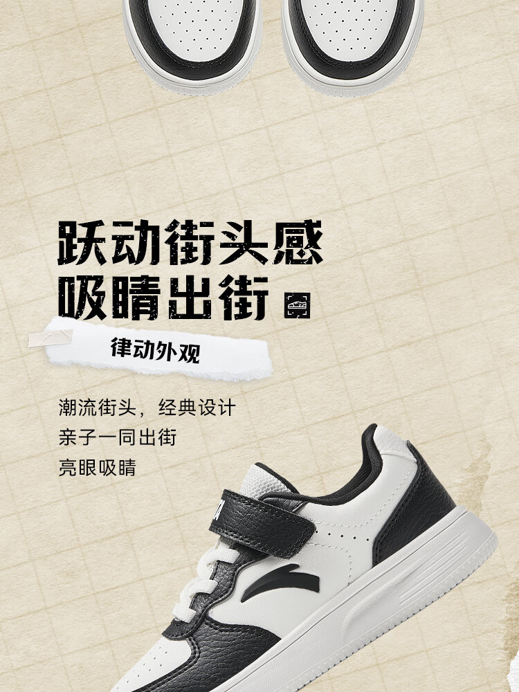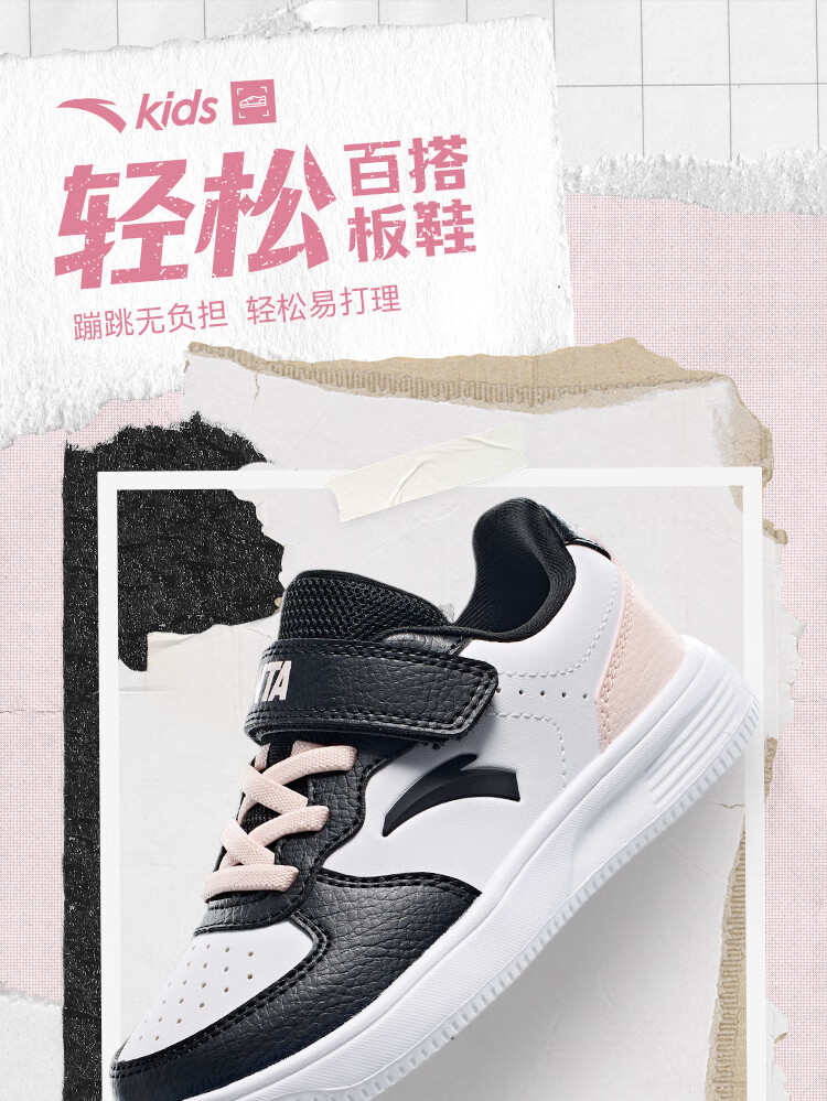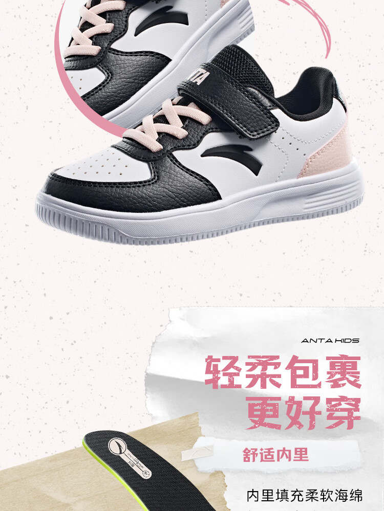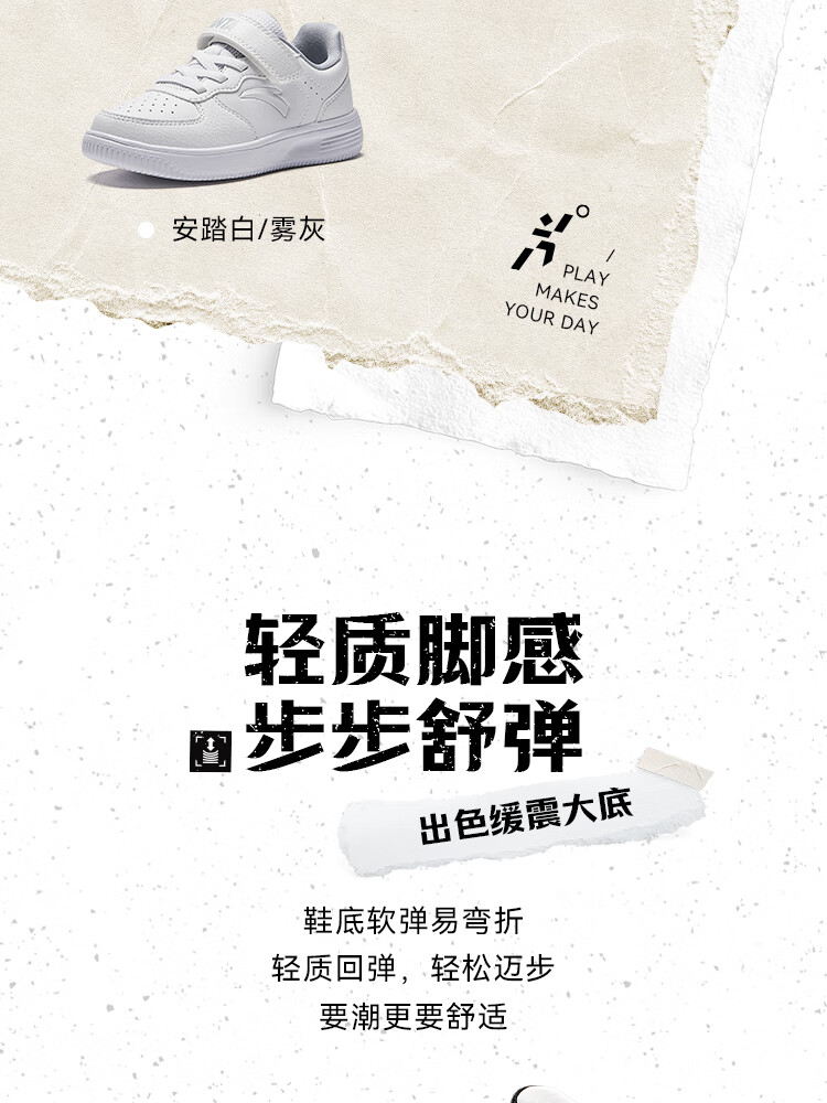 Anta children's sports shoes boys' Velcro campus white shoes low-cut sneakers A12449988