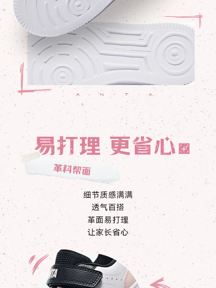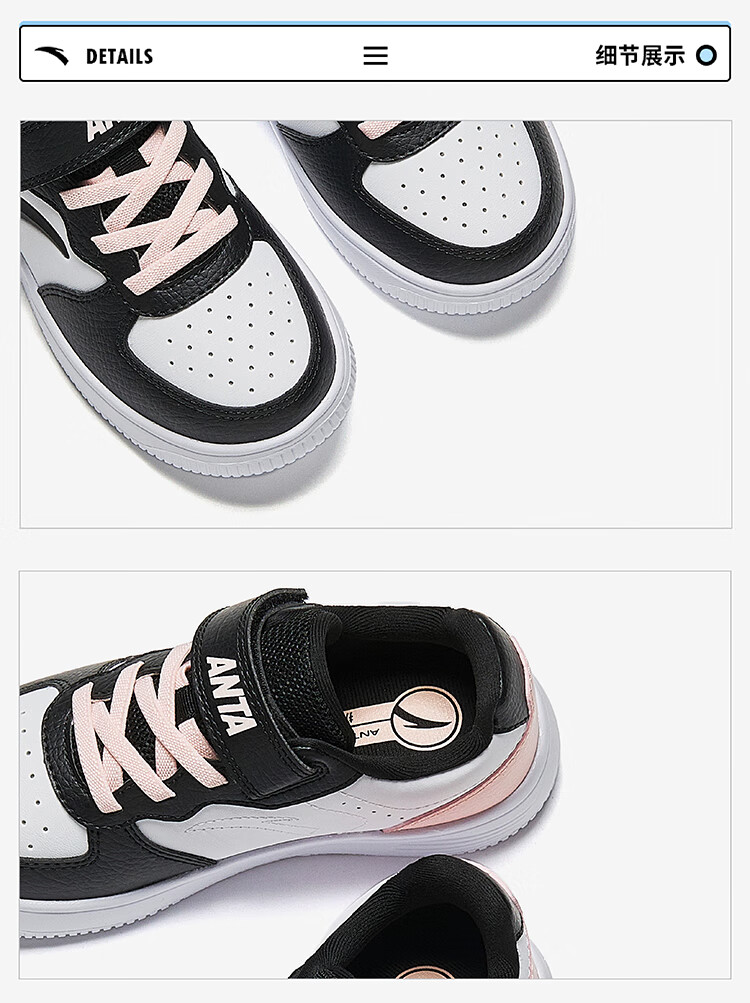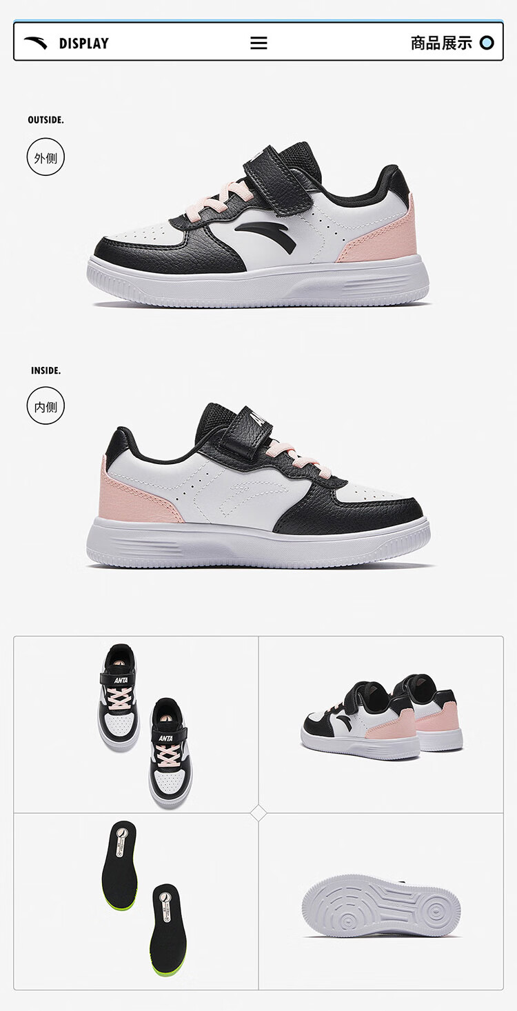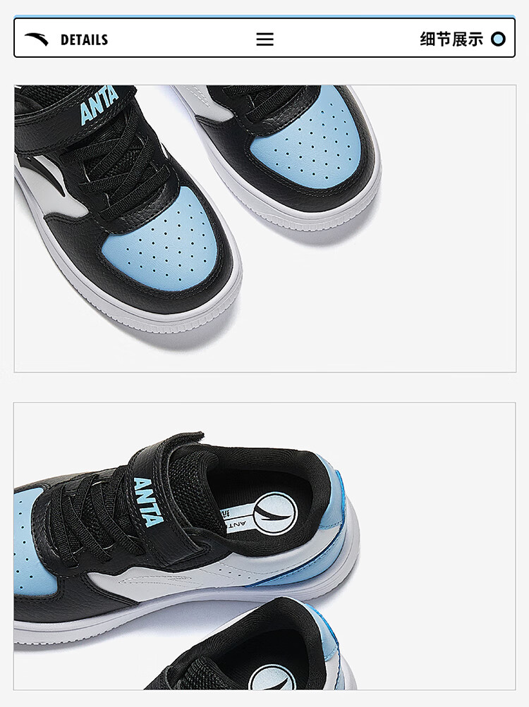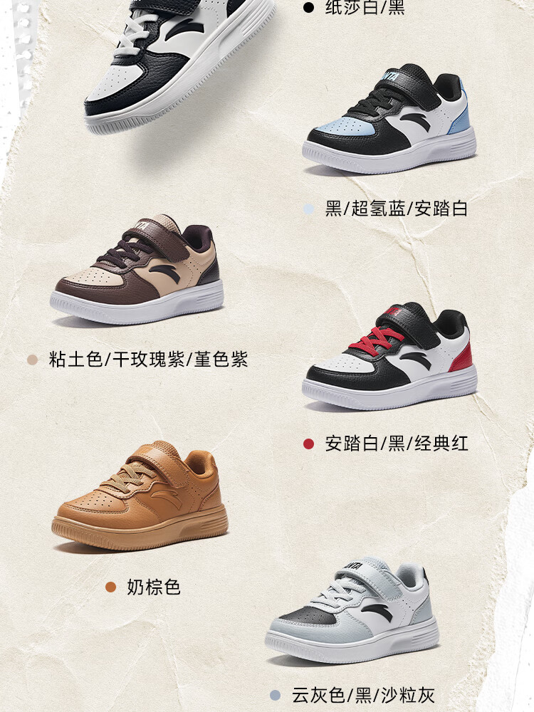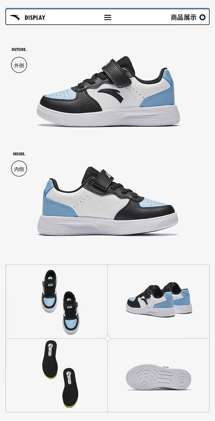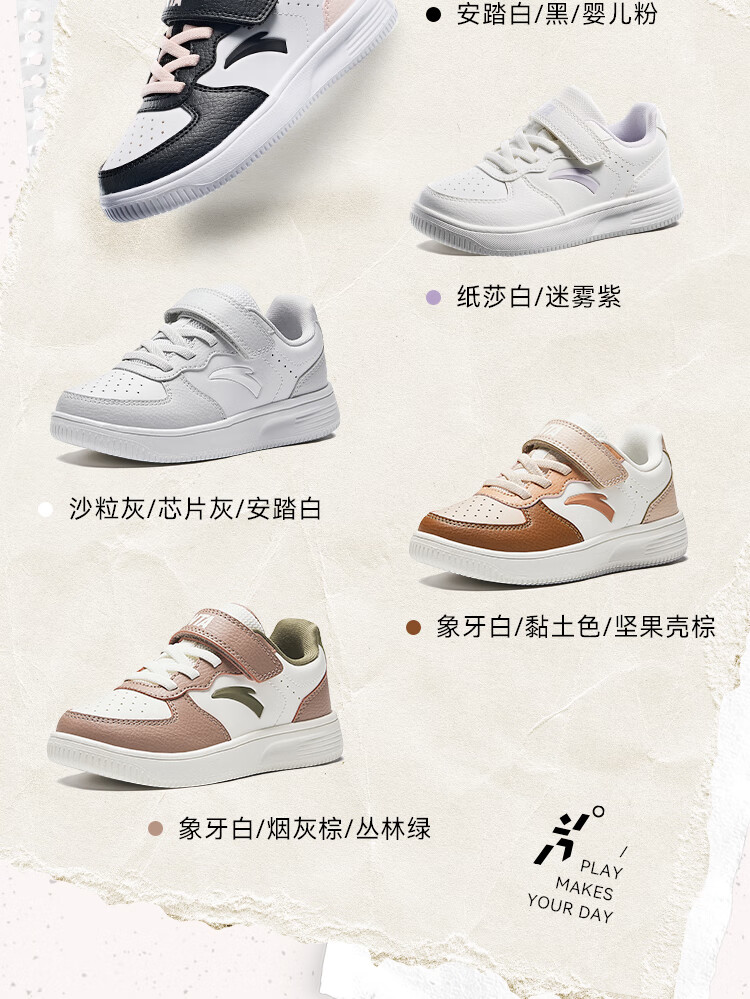 Anta children's sports shoes boys' Velcro campus white shoes low-cut sneakers A12449988