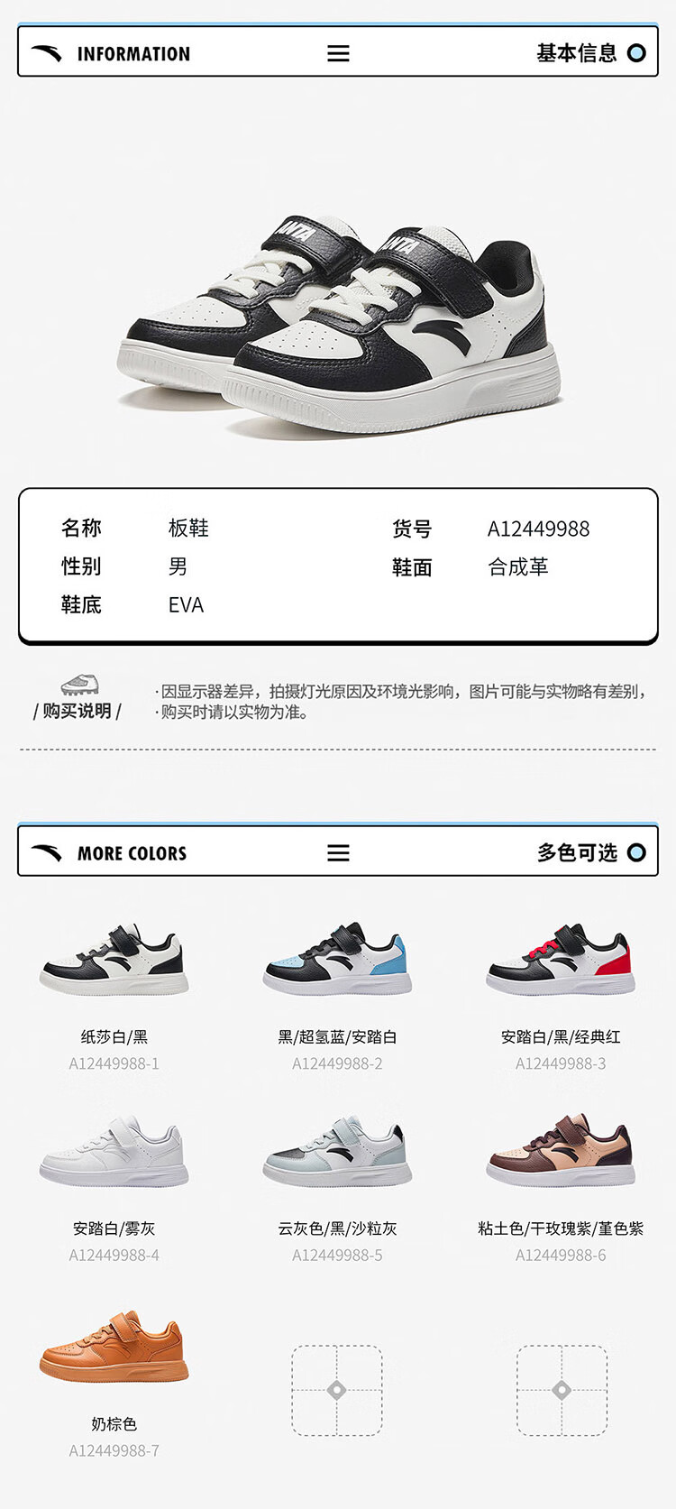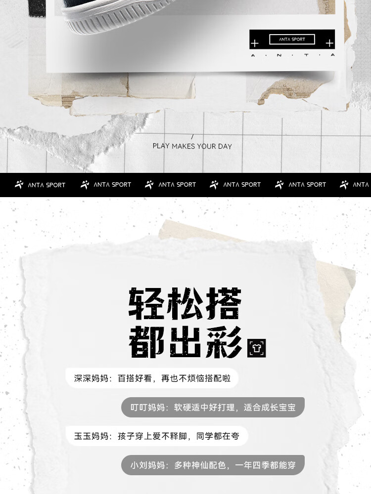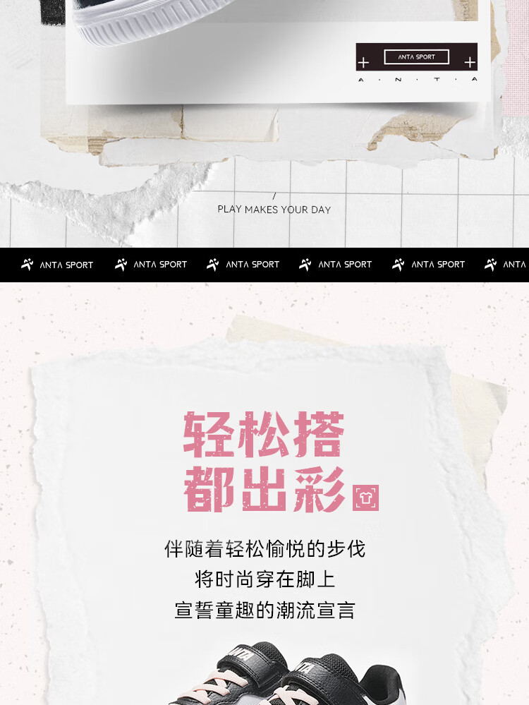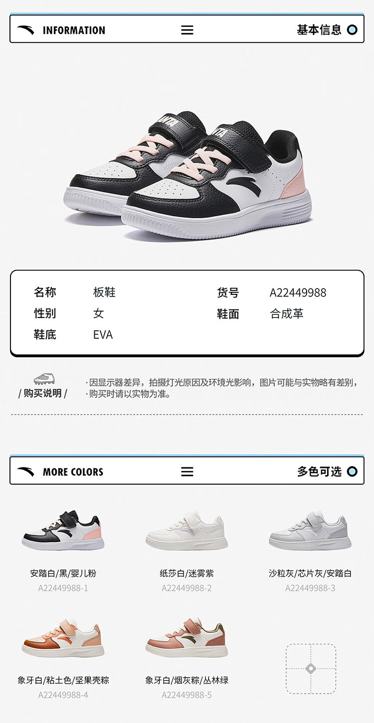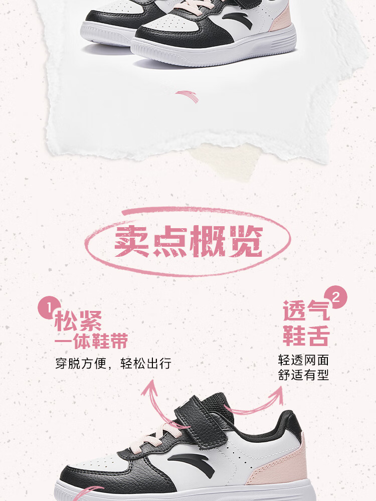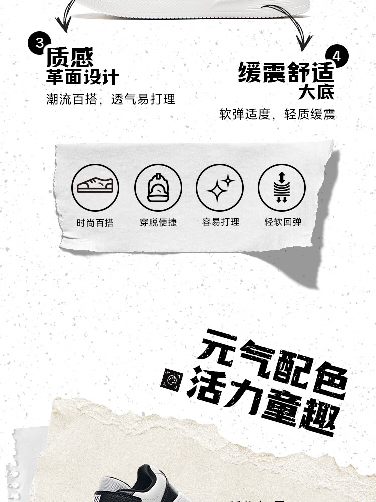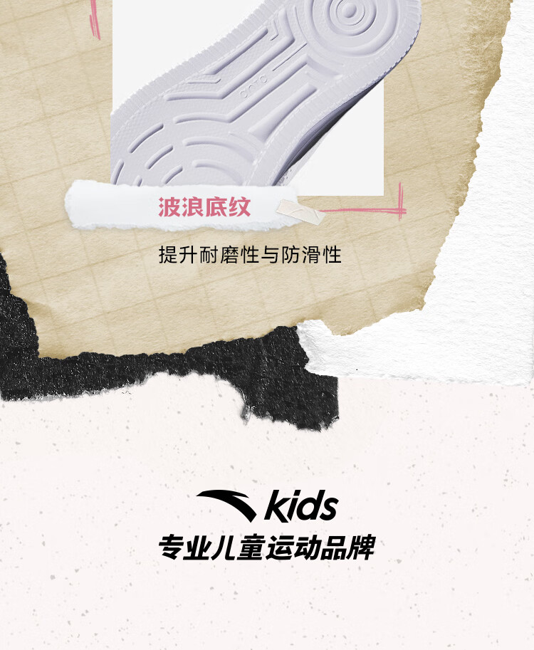 Anta children's sports shoes boys' Velcro campus white shoes low-cut sneakers A12449988