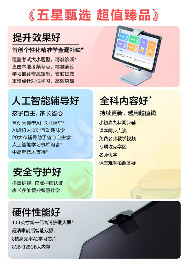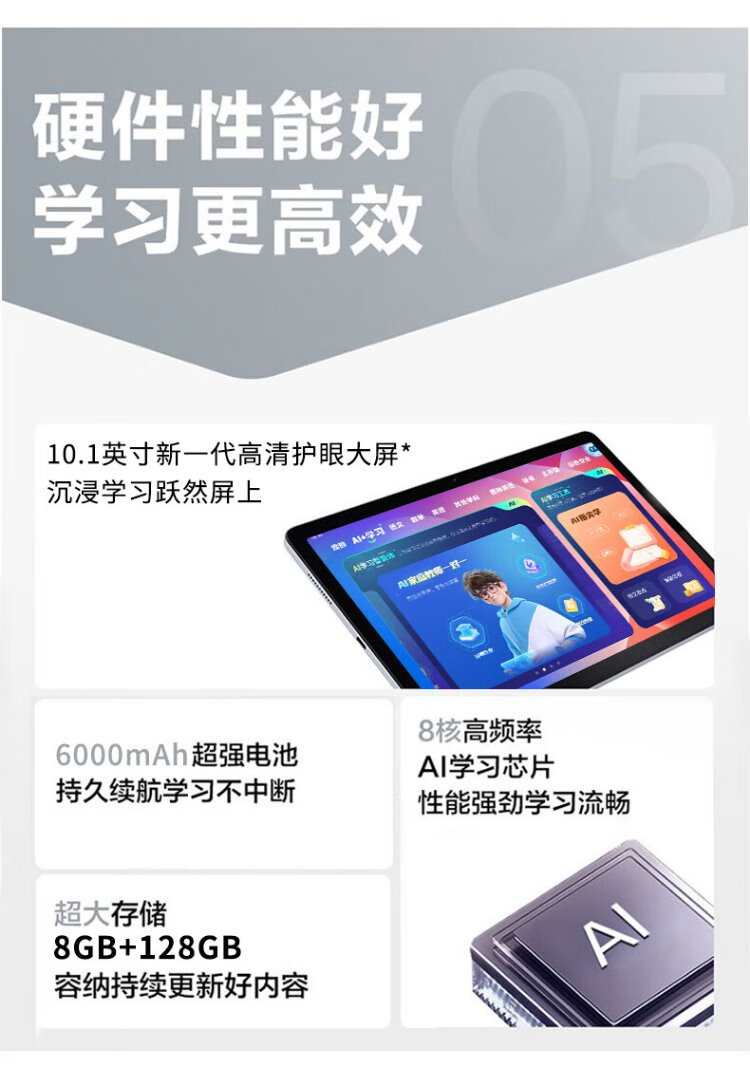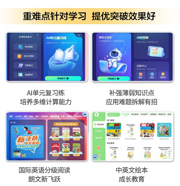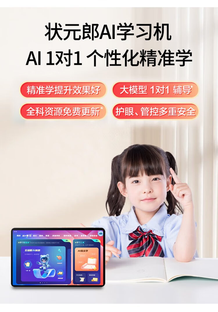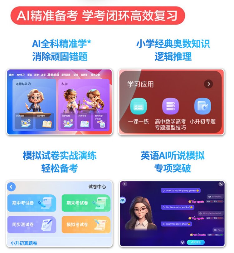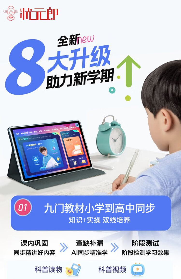 Zhuangyuanlang AI learning machine tablet computer for nine courses from elementary school to junior high school to high school synchronized tutoring machine English reading machine electronic dictionary dual system parent control 8+128G