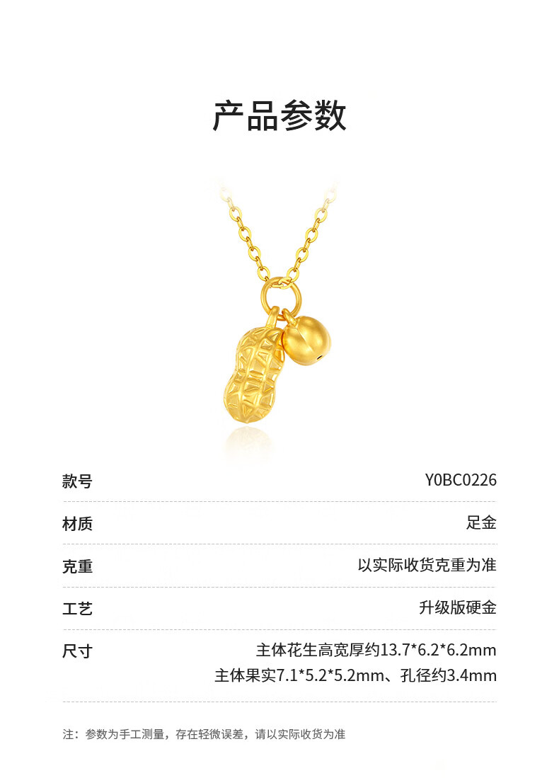 Zhou Dasheng's Good Peanut Gold Pendant Women's Pure Gold Hard Gold Pendant with Necklace Birthday Gift for Girlfriend 0.45g