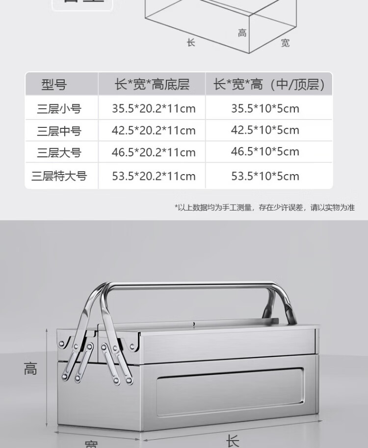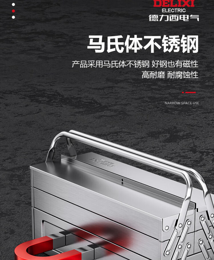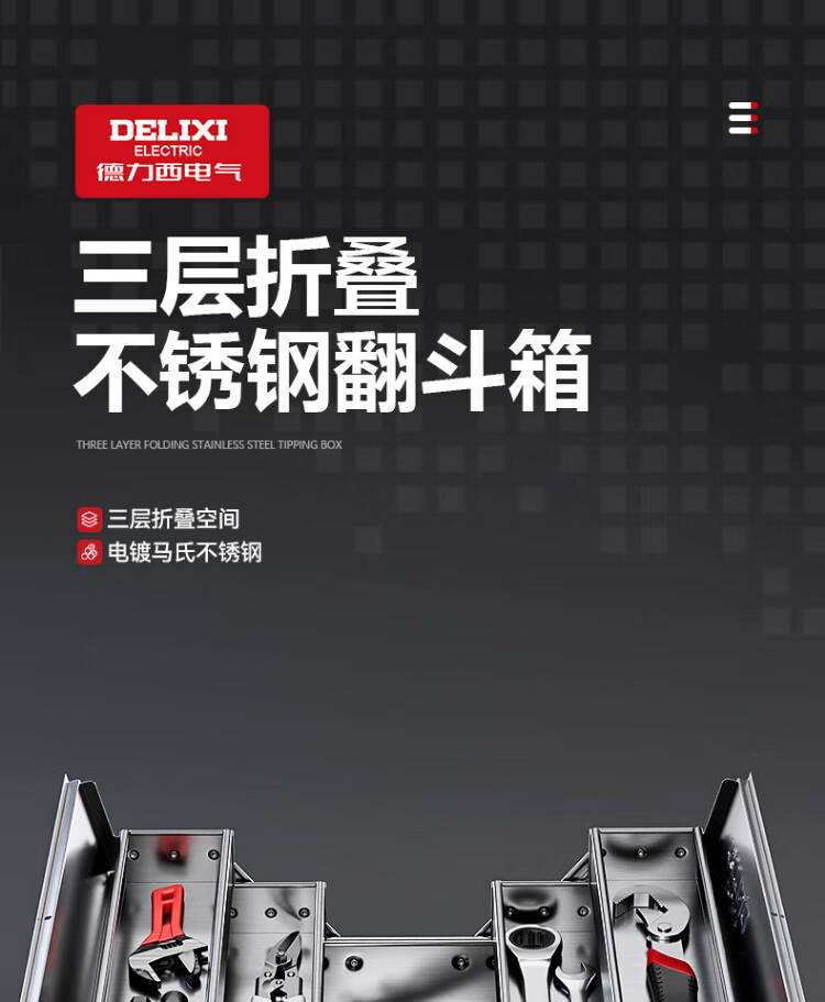DELIXI ELECTRIC stainless steel tool box folding household multi-functional hardware vehicle-mounted iron sheet industrial-grade storage box double-layer small size