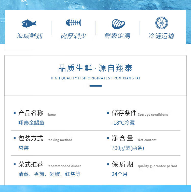 Xiangtai frozen Hainan golden pomfret 700g (2 pieces)