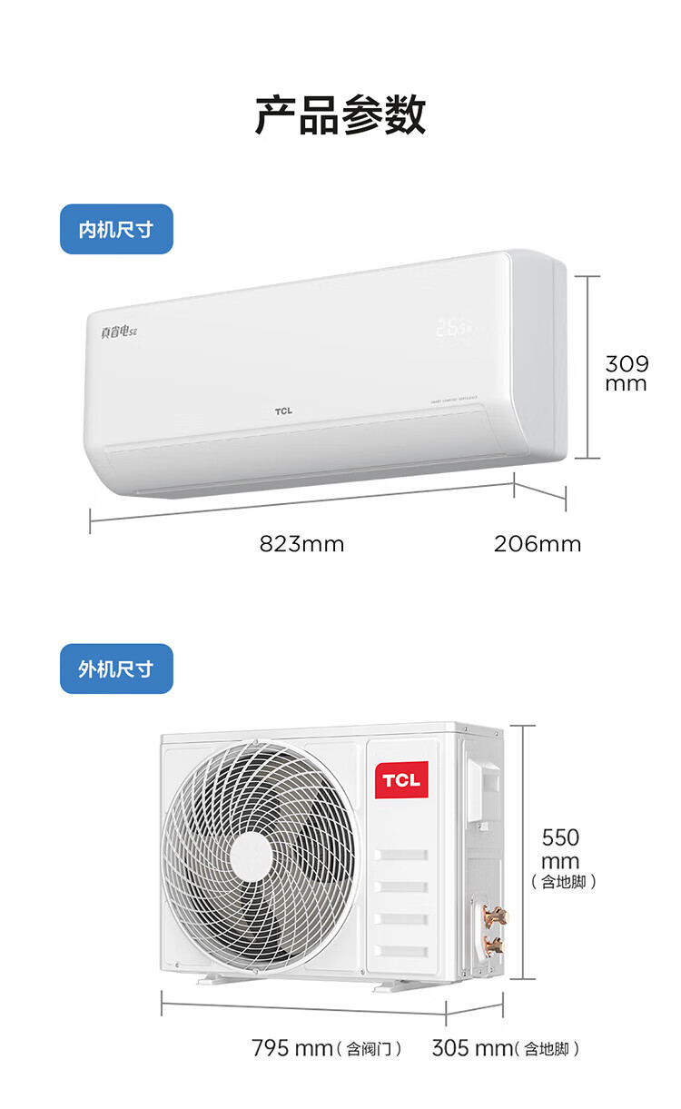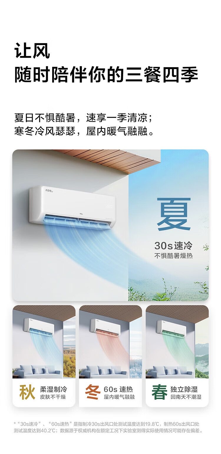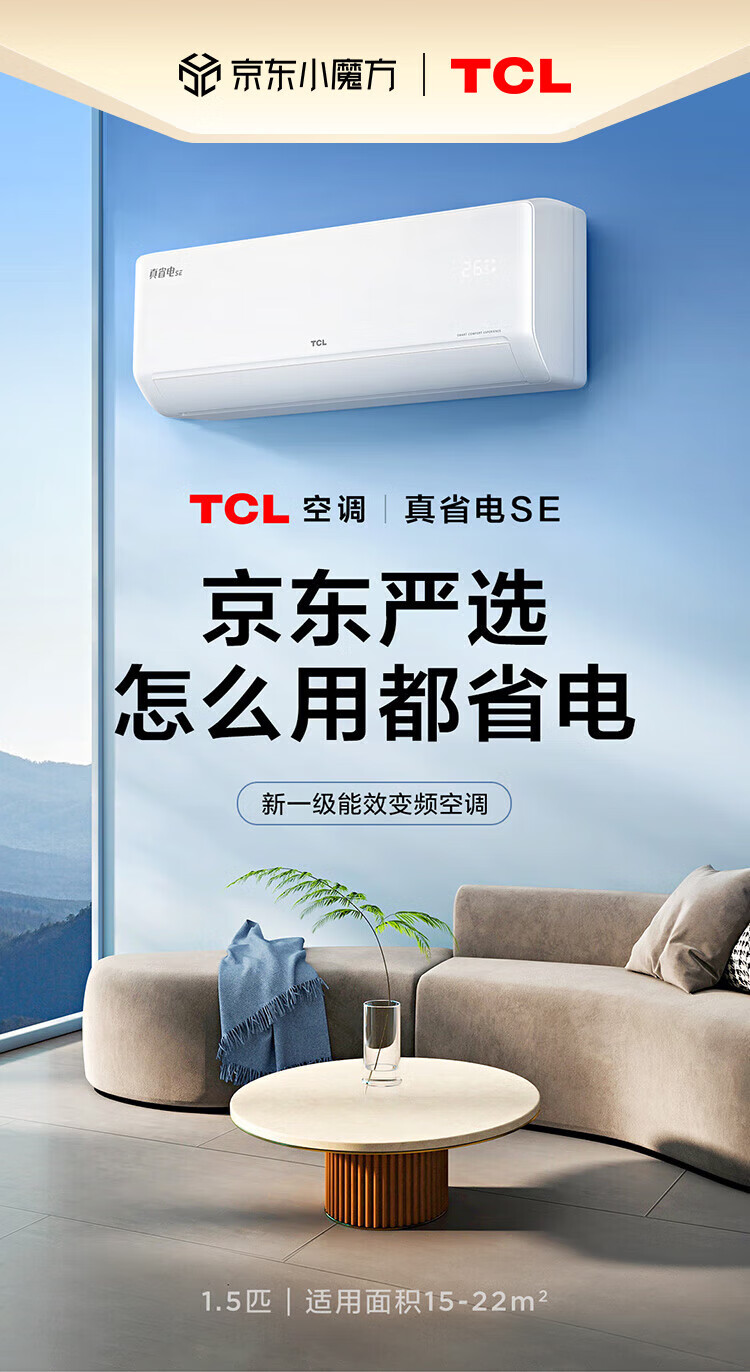 TCL JD.com co-branded large 1.5 horsepower new first-level energy efficiency true power saving SE on-hook air conditioning heating and cooling frequency conversion KFR-35GW/JD21+B1 national subsidy trade-in