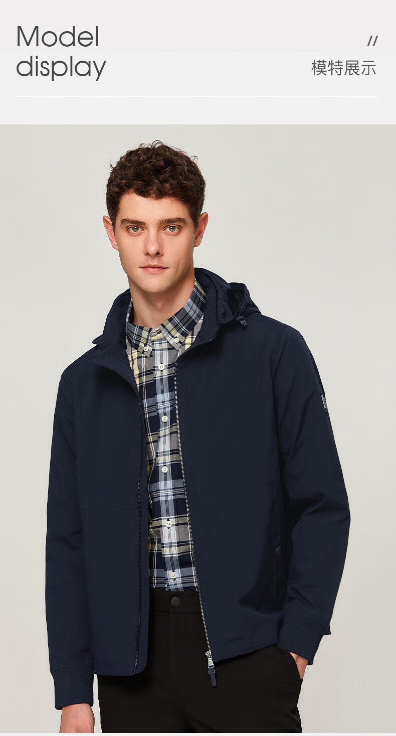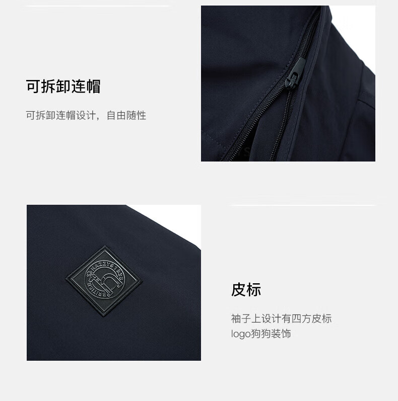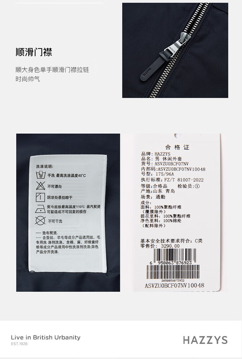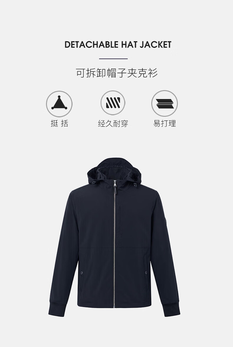HAZZYS Men's Removable Hat Casual Sports Jacket Men's ASVZU0BCF07 Navy Blue NV 170/92A46