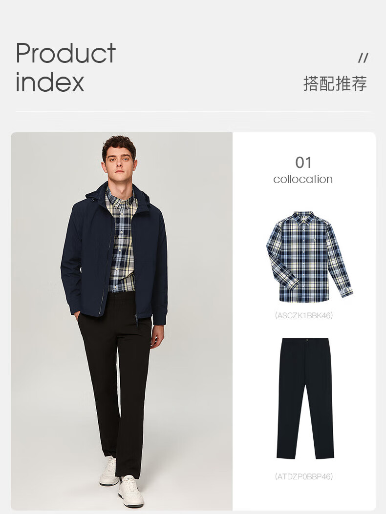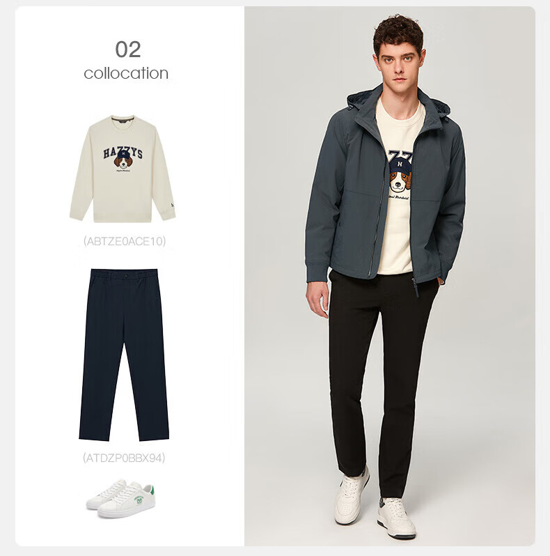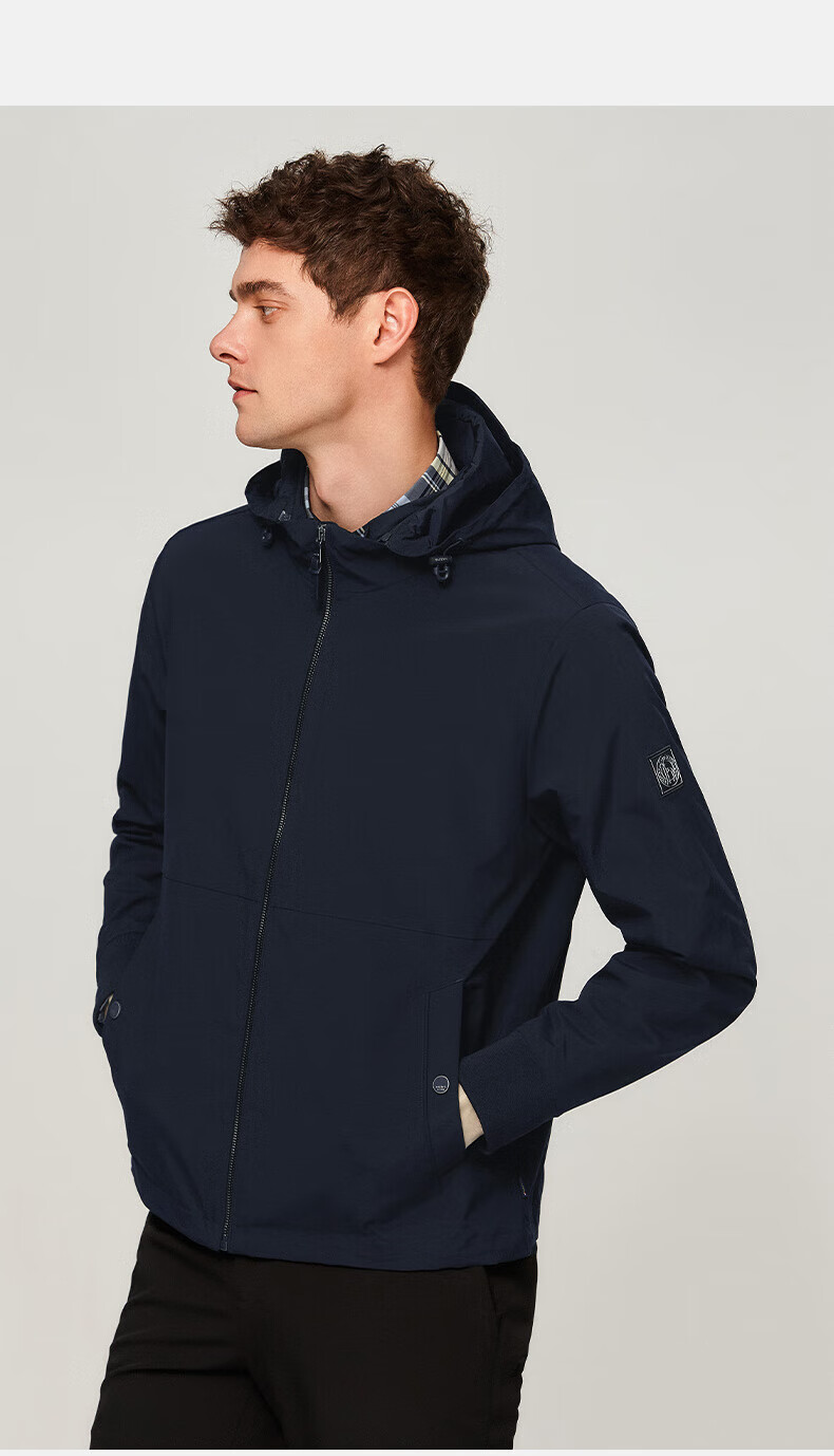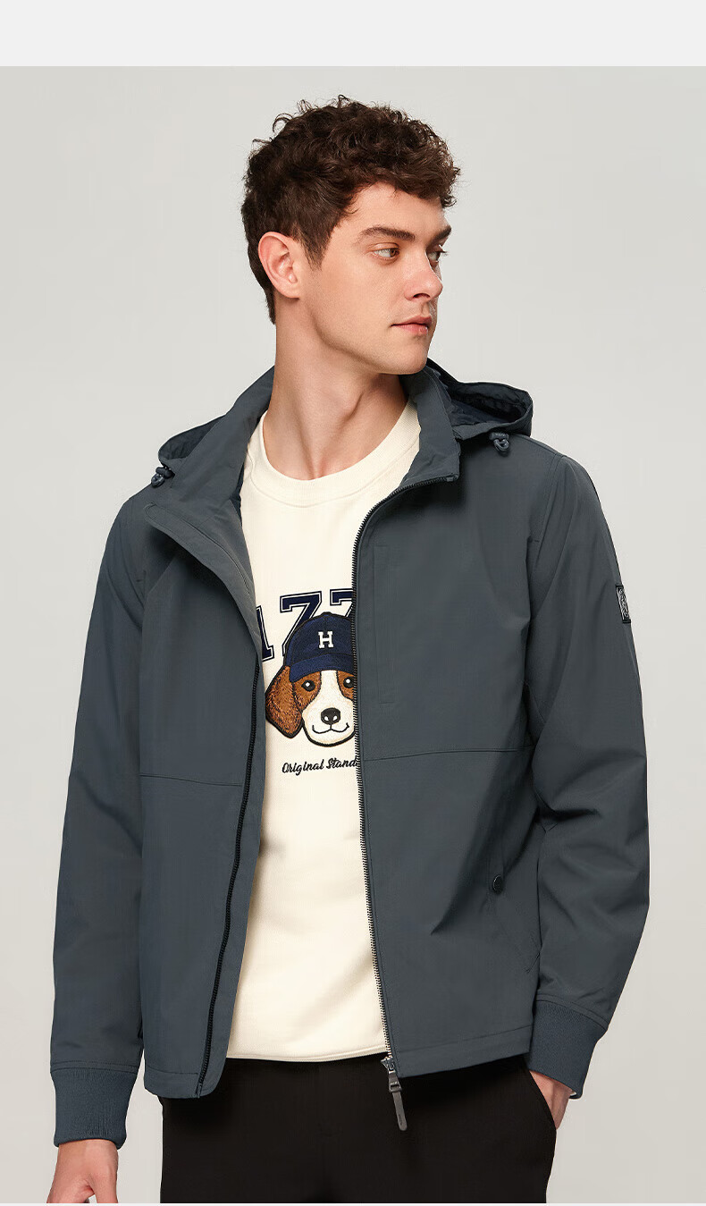 HAZZYS Men's Removable Hat Casual Sports Jacket Men's ASVZU0BCF07 Navy Blue NV 170/92A46