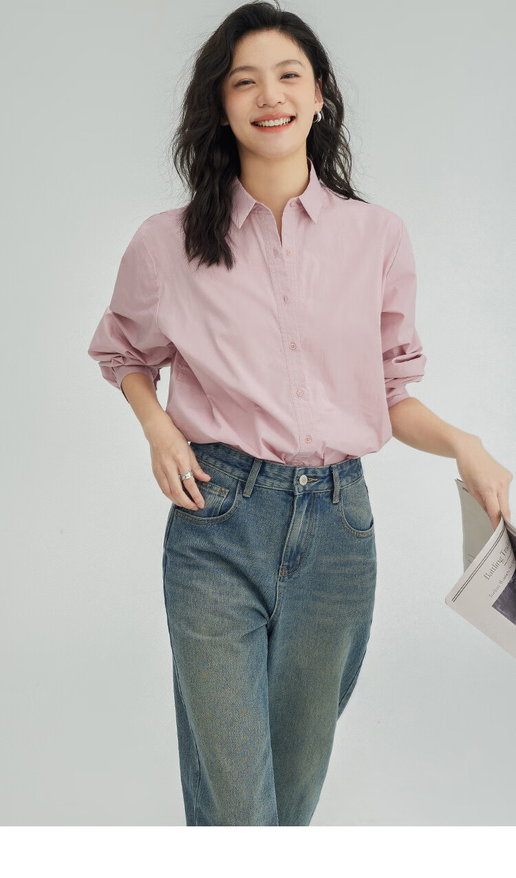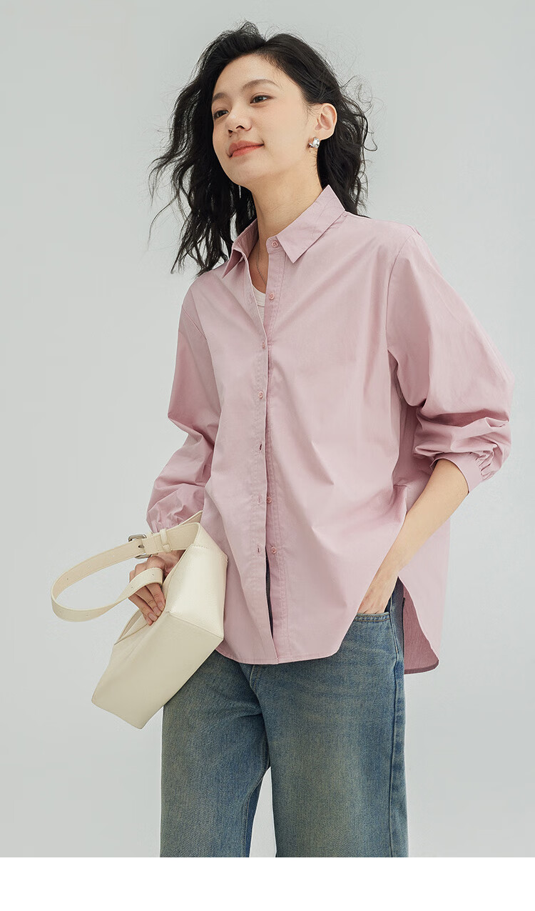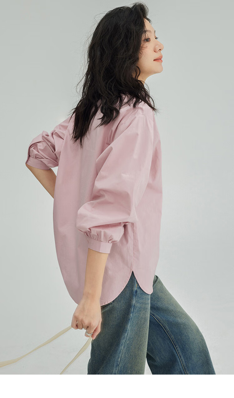 Demana Cool Gray Pink Shirt Women's Tall Loose Slim Layer Versatile Shirt Women Gray Pink M