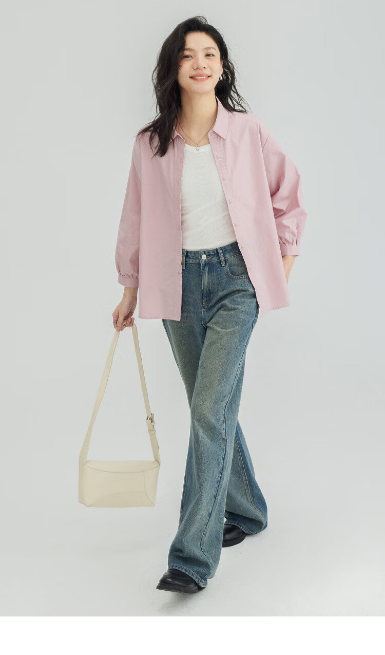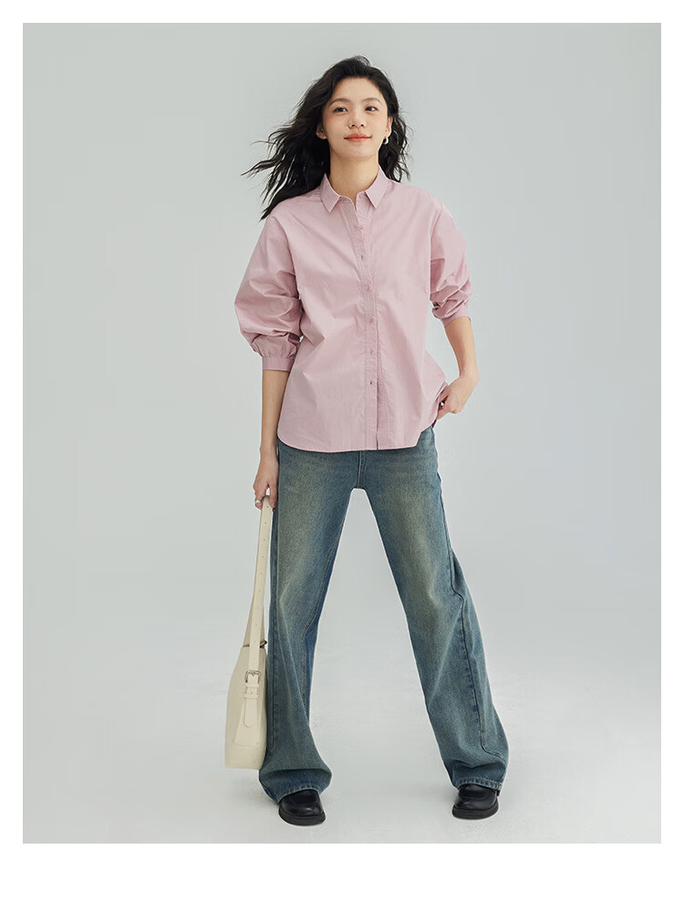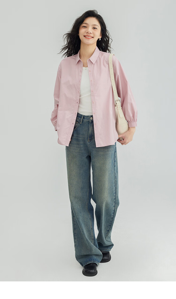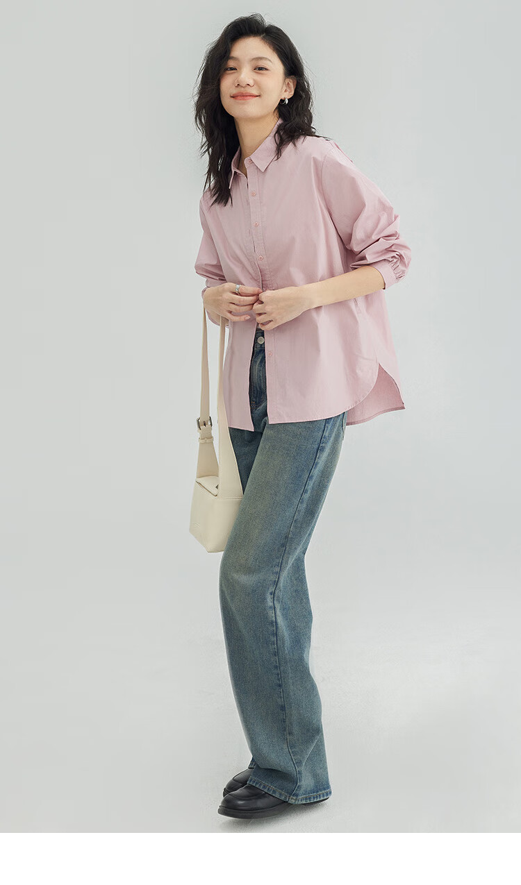 Demana Cool Gray Pink Shirt Women's Tall Loose Slim Layer Versatile Shirt Women Gray Pink M