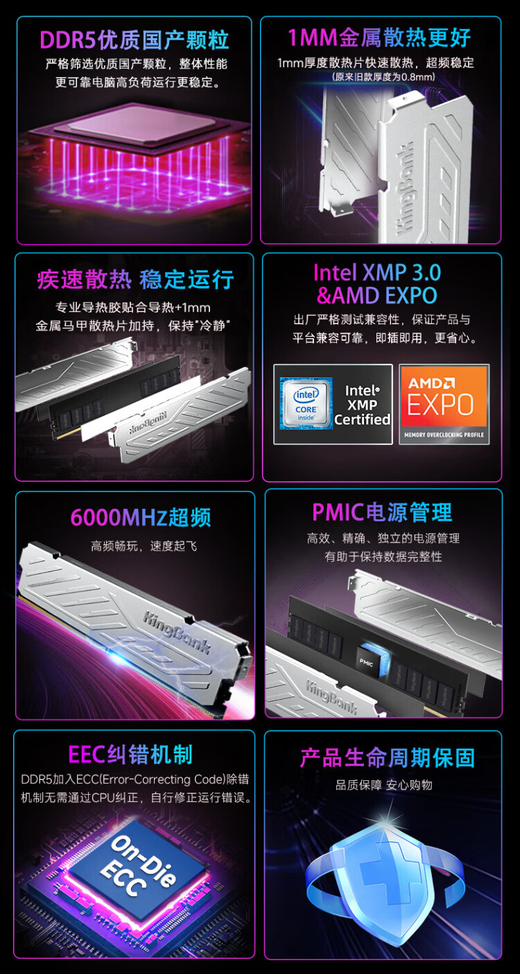 KINGBANK 32GB (16GBX2) set DDR5 6000 desktop memory module domestic particles Yinjue C36 Deepseek hardware