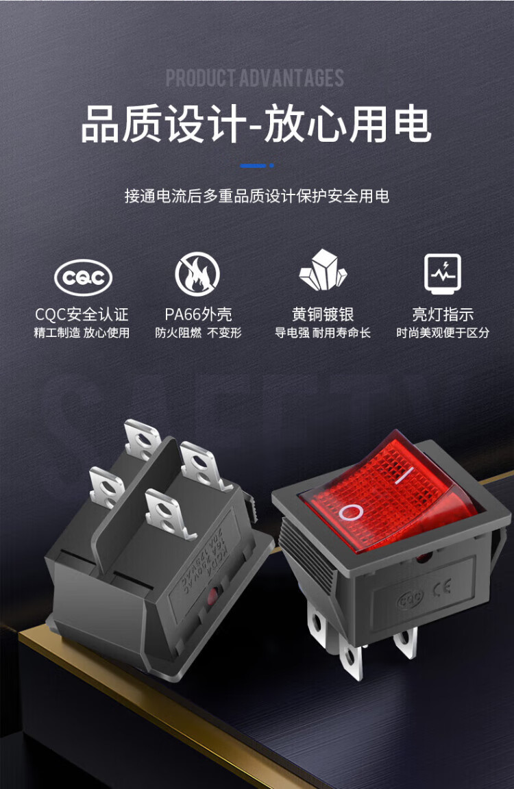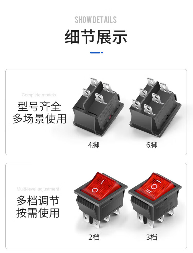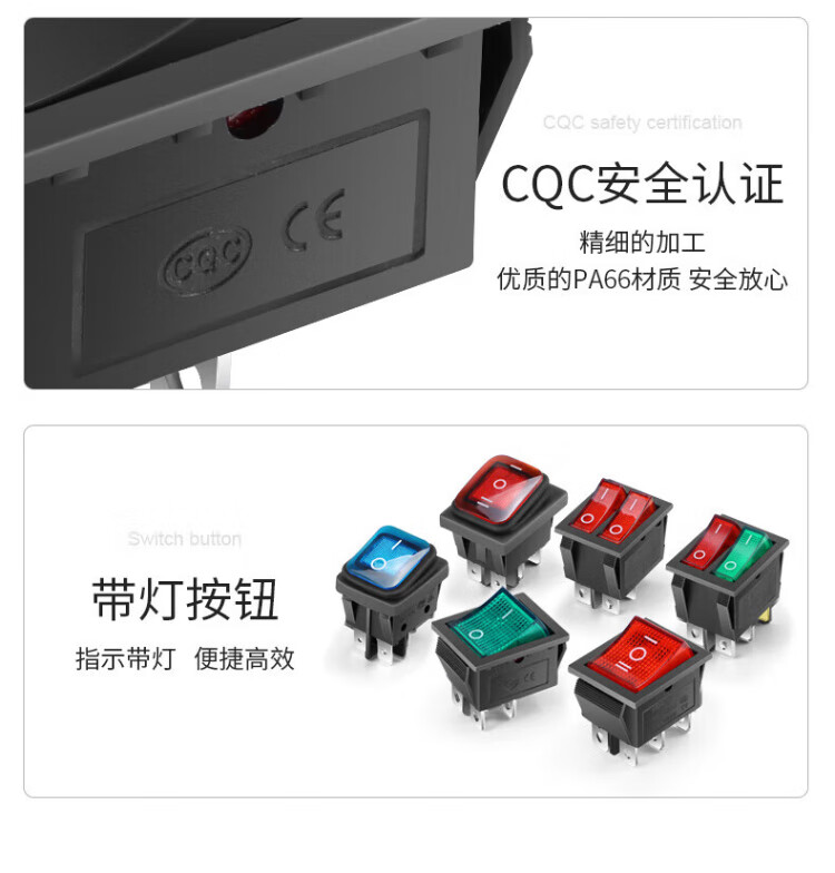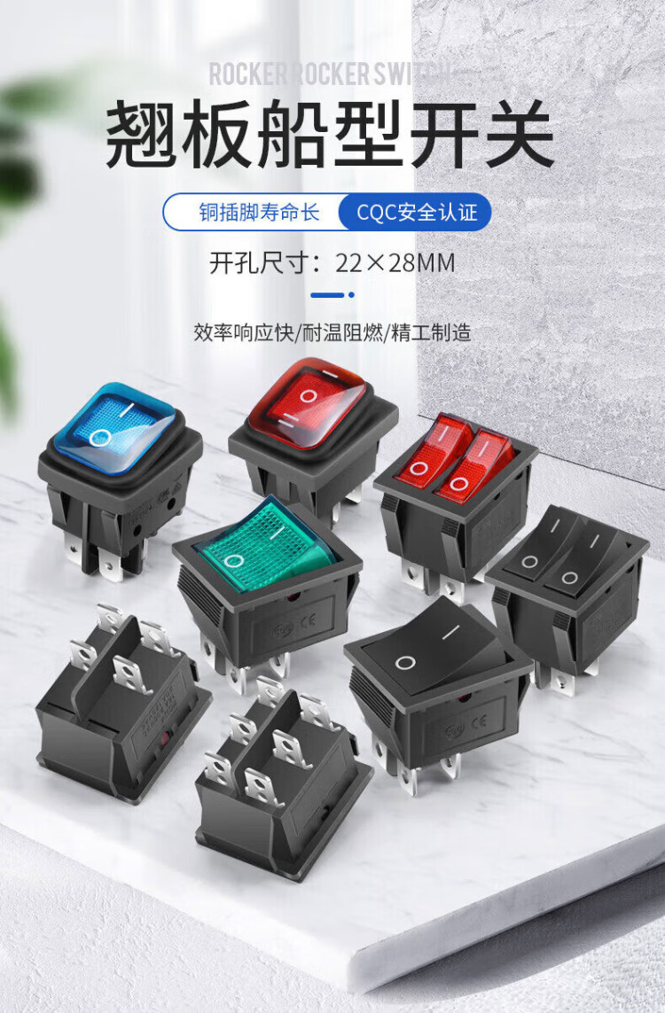 汇君 KCD4船型开关船形翘板电源按钮大电流 4脚2档-红开带灯16A