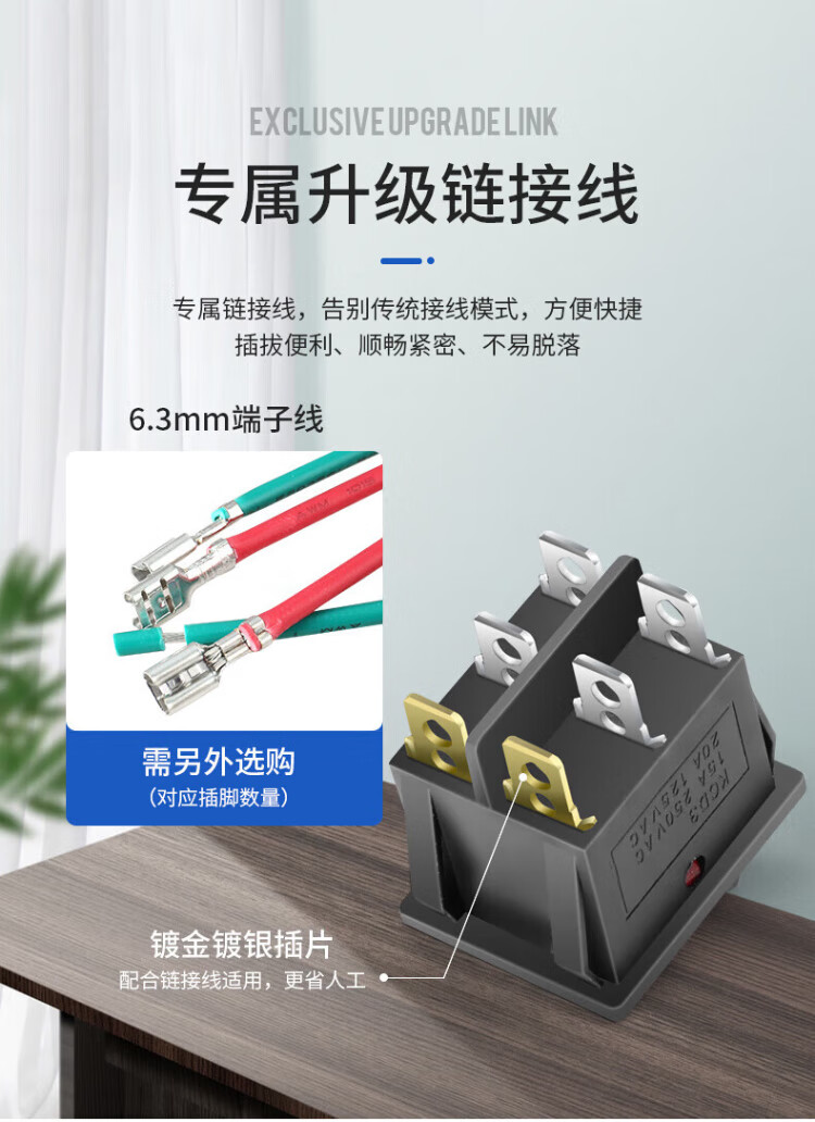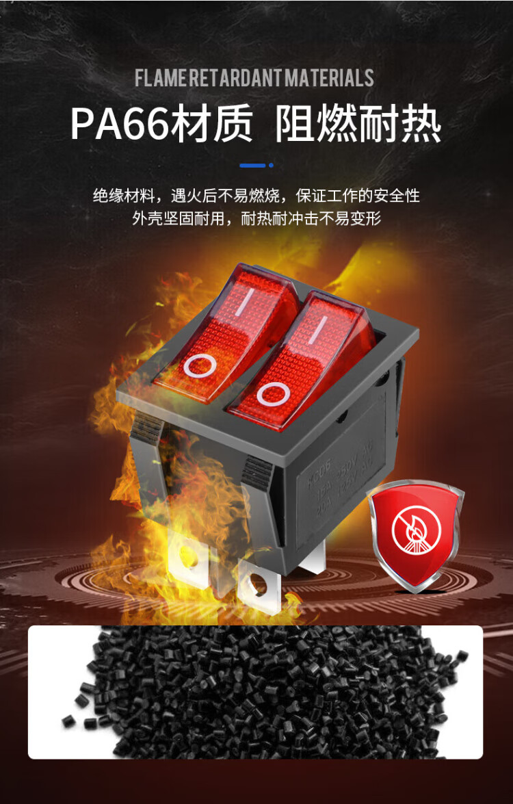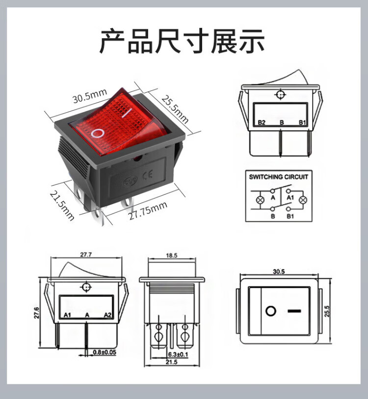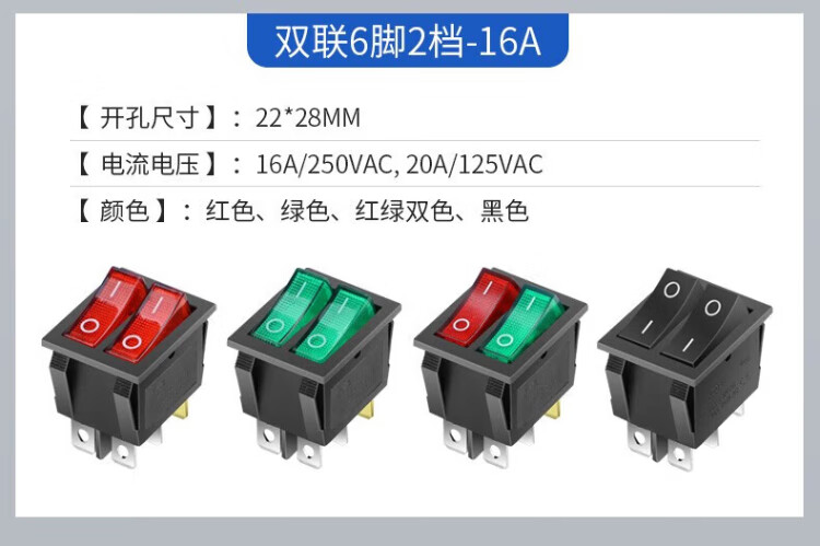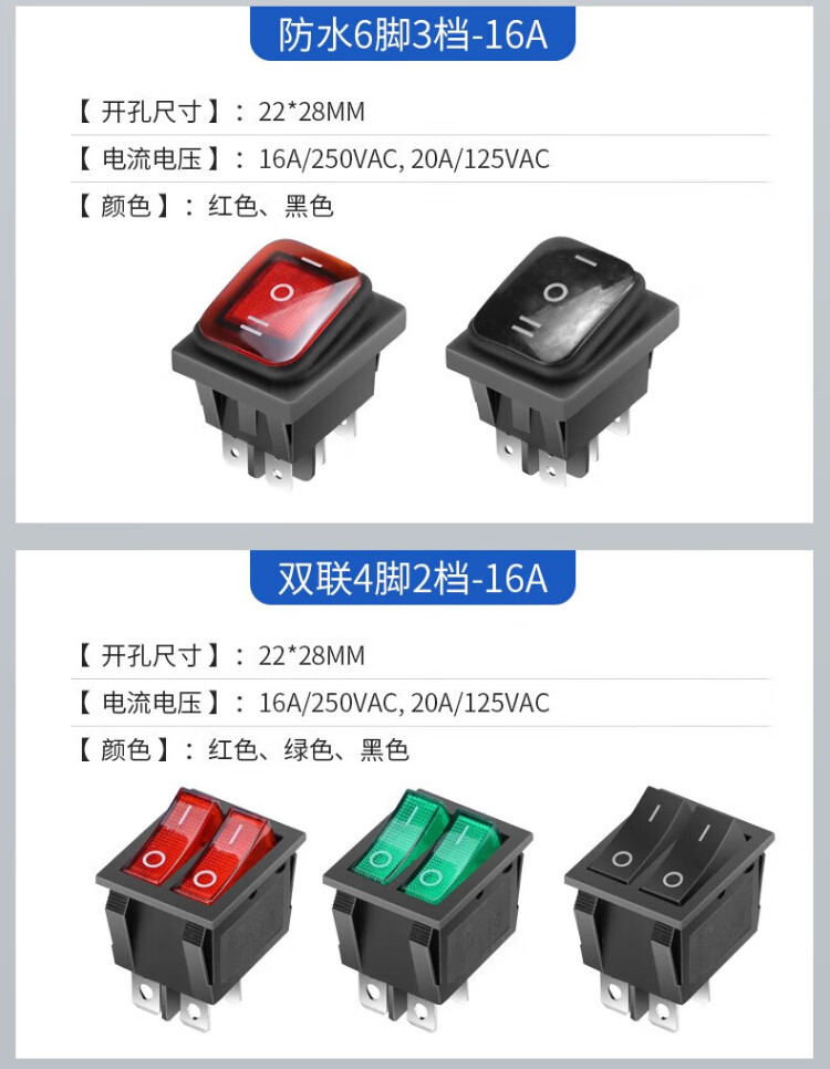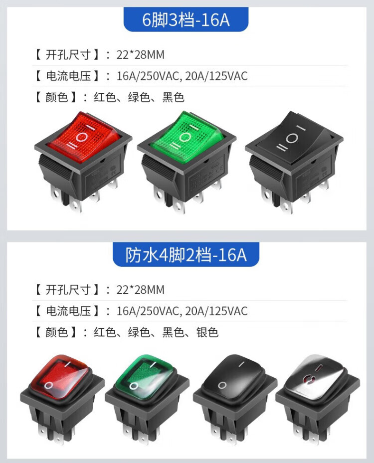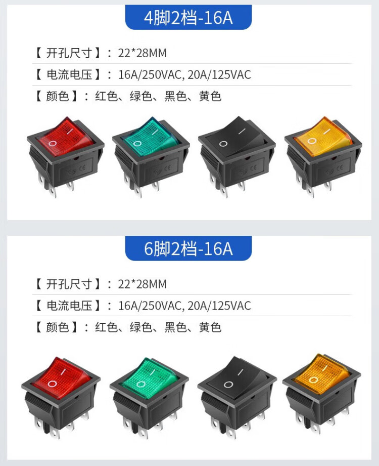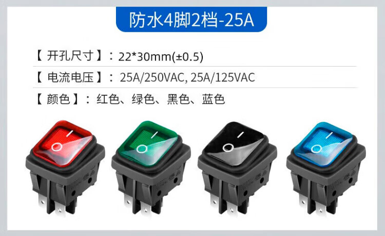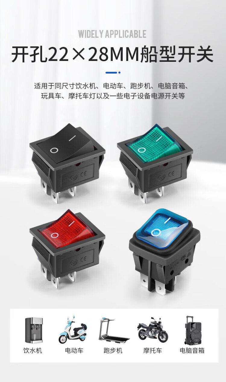 汇君 KCD4船型开关船形翘板电源按钮大电流  4脚2档-红开带灯16A
