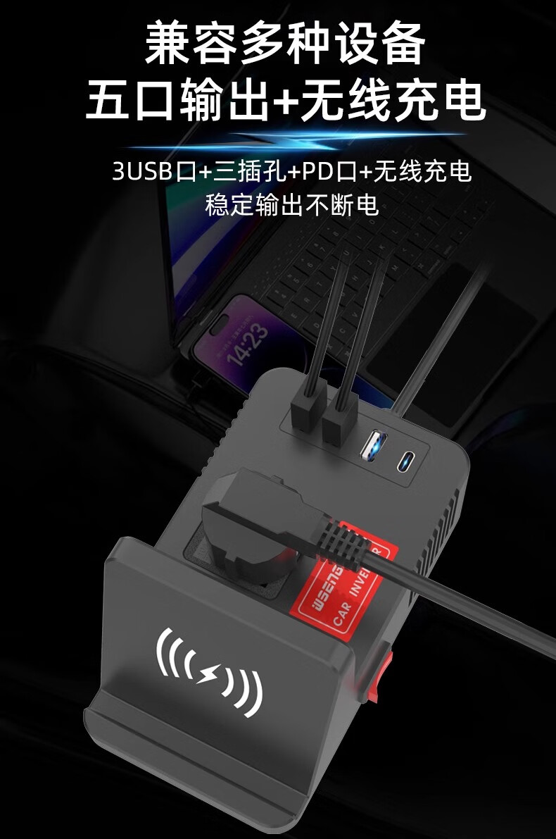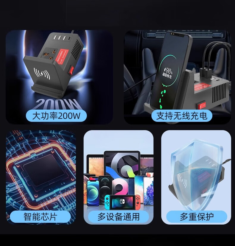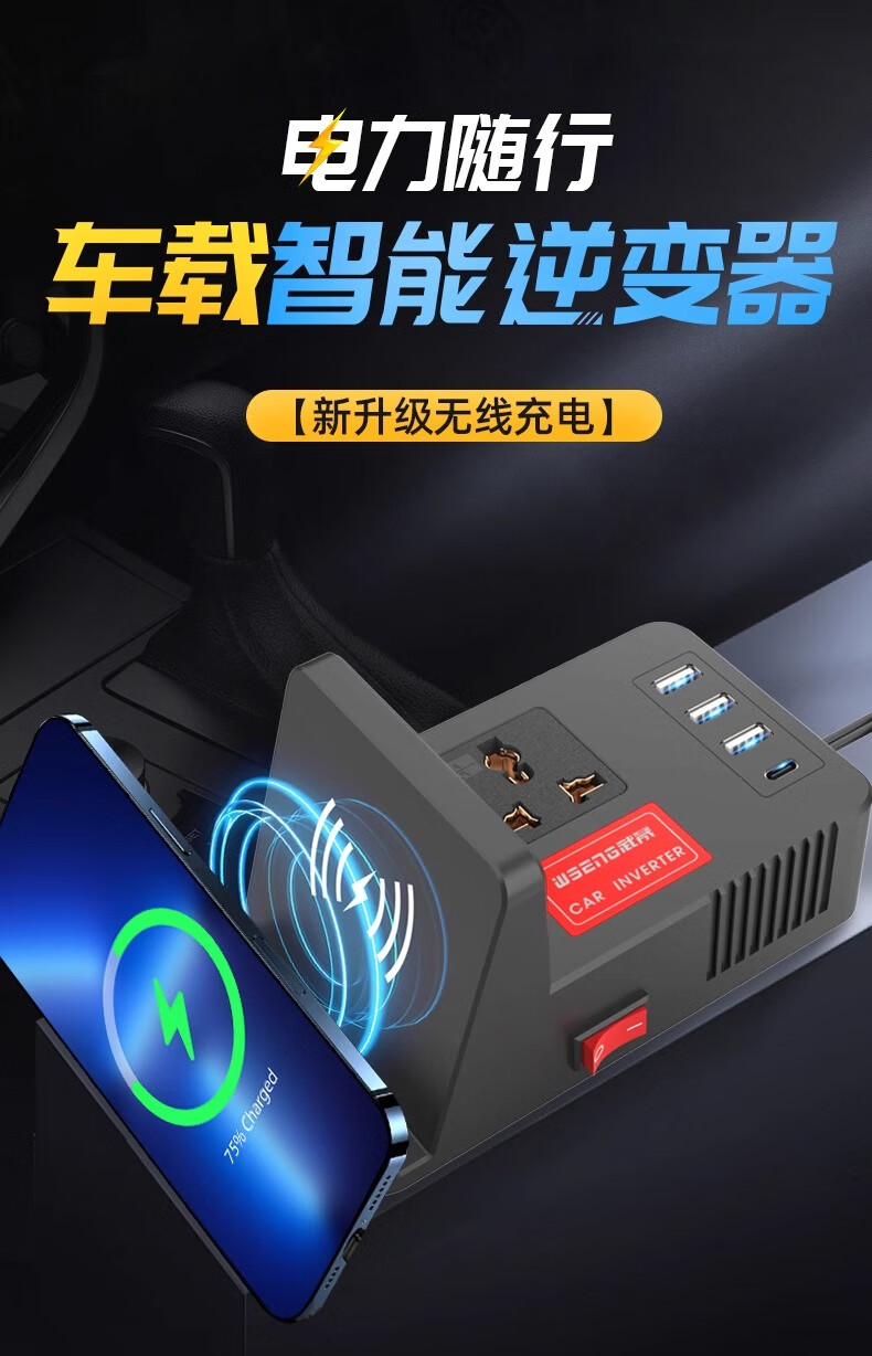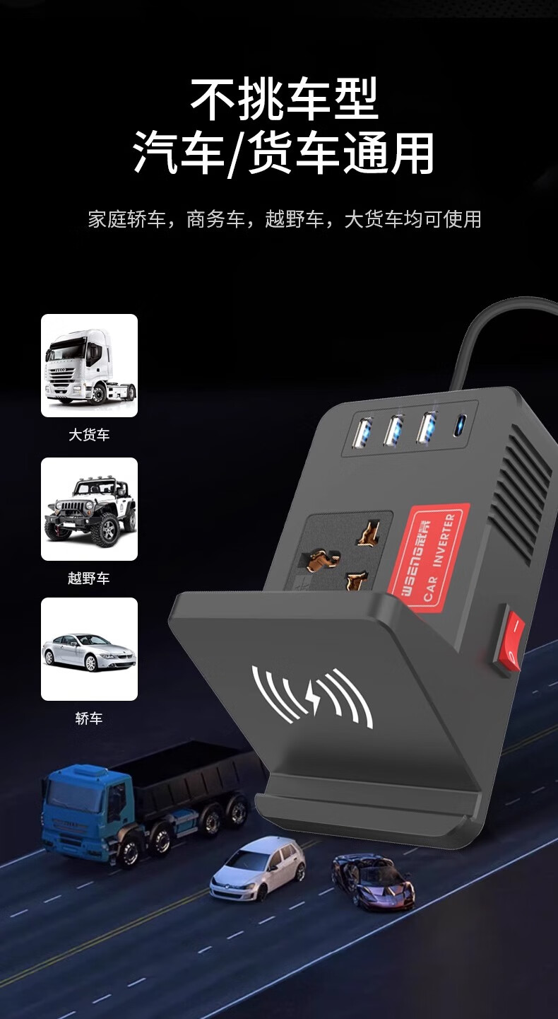 Kylie wireless charging car inverter 12v24v universal to 220v power converter car van socket charger