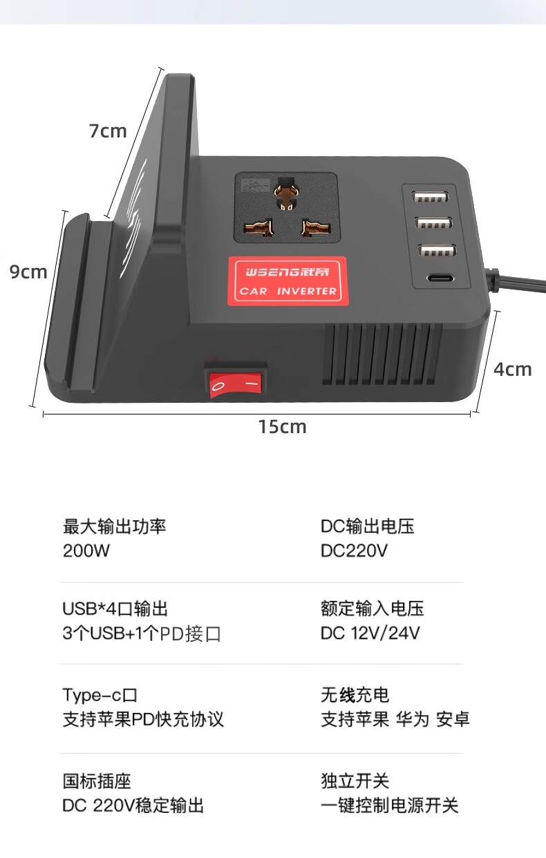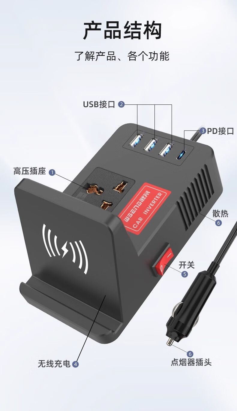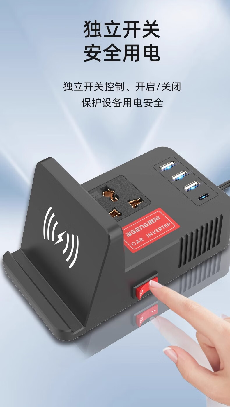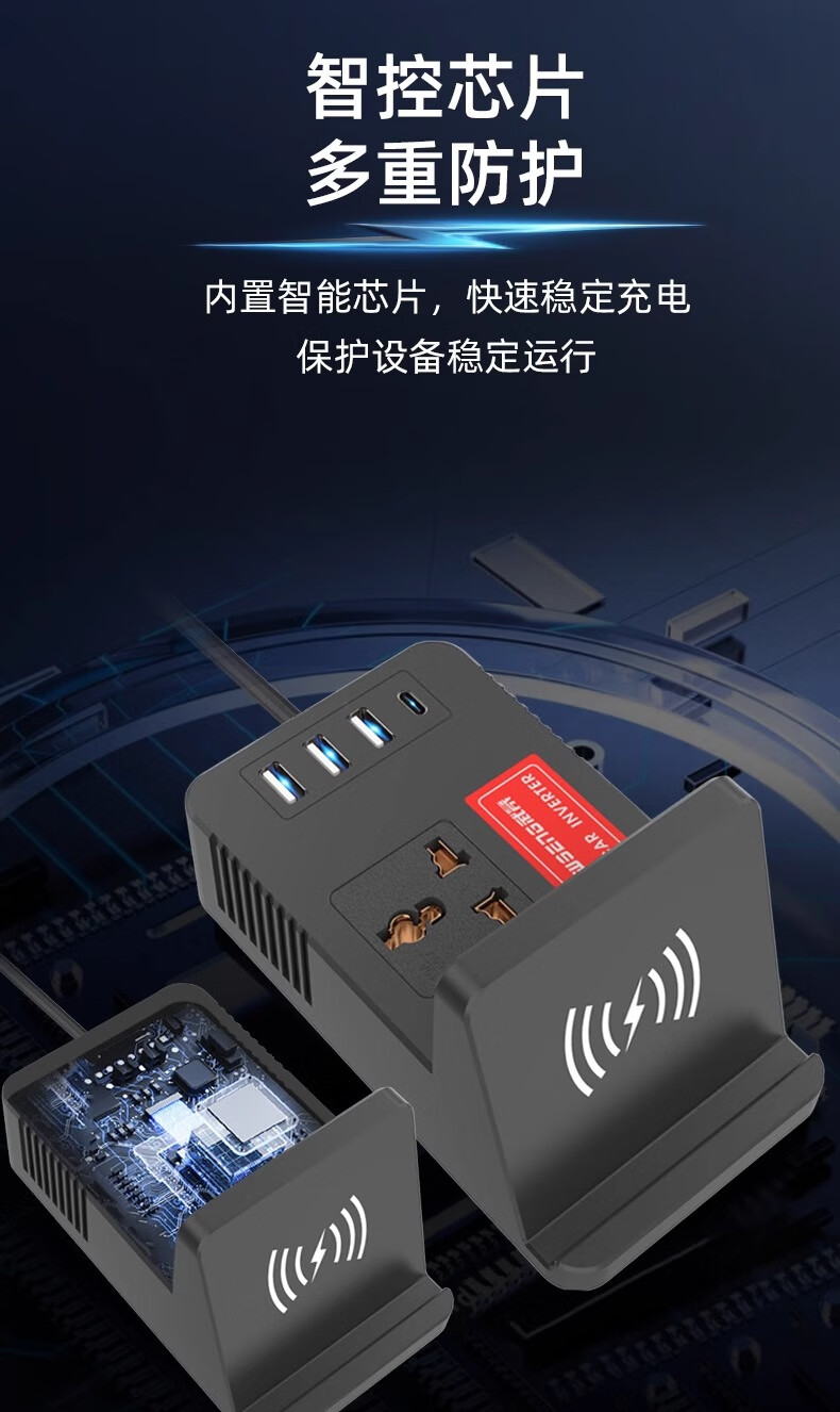 Kylie wireless charging car inverter 12v24v universal to 220v power converter car van socket charger
