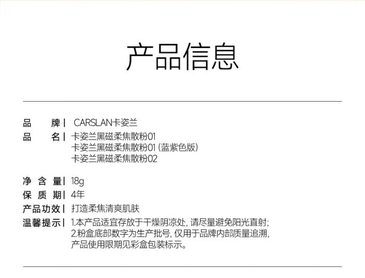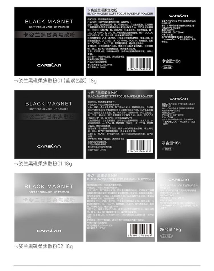 Carslan Black Magnetic Loose Powder 2.0 Large Capacity (Oil Control Transparent) 18g Setting Honey Powder Oil Control Concealer Long-lasting Sweatproof Gift
