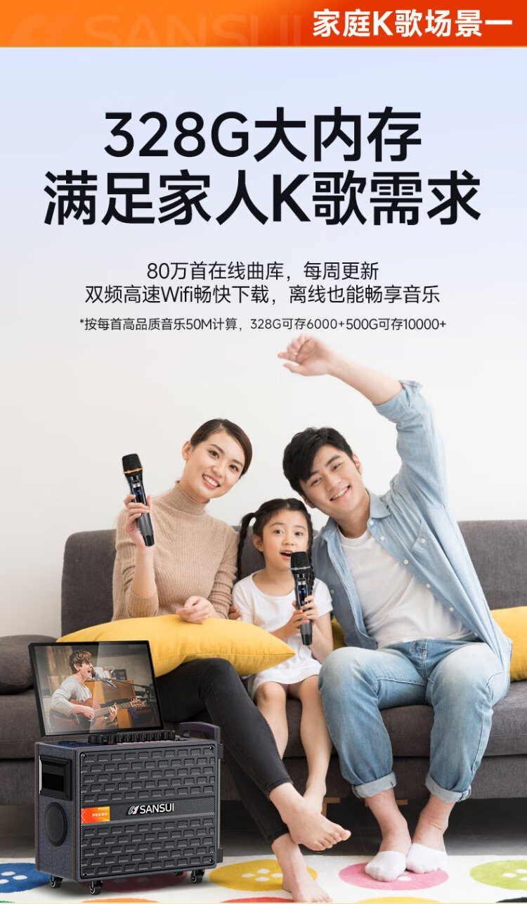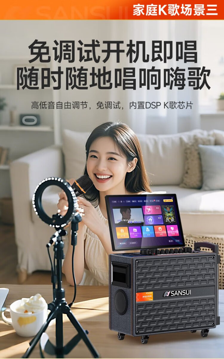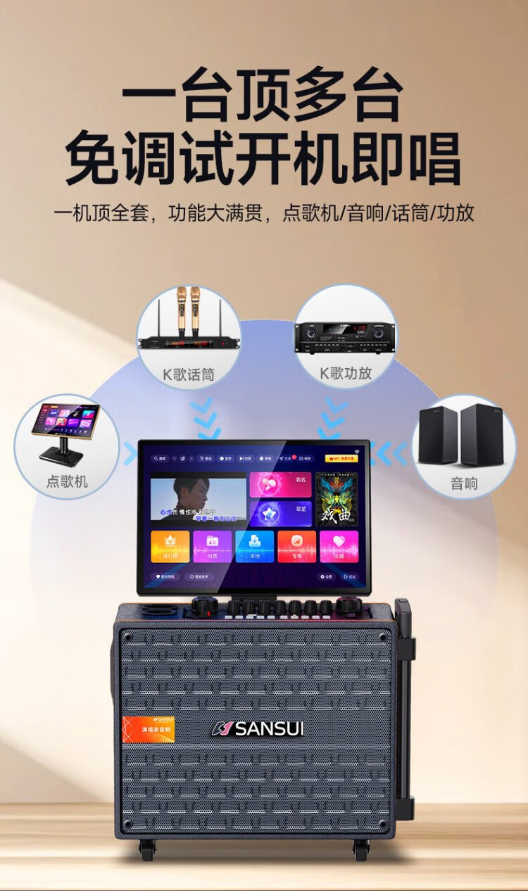 SANSUI outdoor karaoke special home ktv audio set karaoke all-in-one machine home singing complete equipment mobile smart bluetooth guitar folk instrument speaker Q085