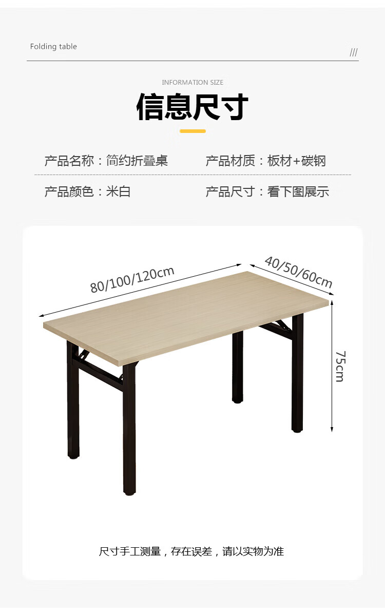 XINGKAI computer table folding table long table folding desk spring table study table training table single white 120*60