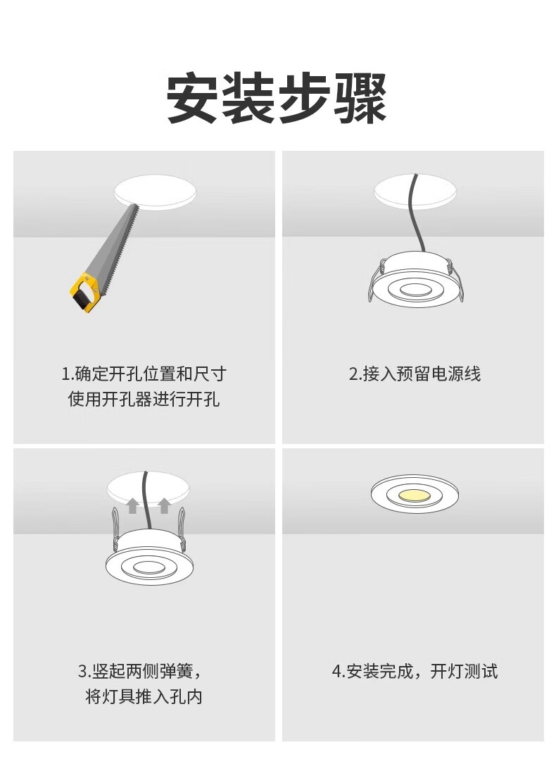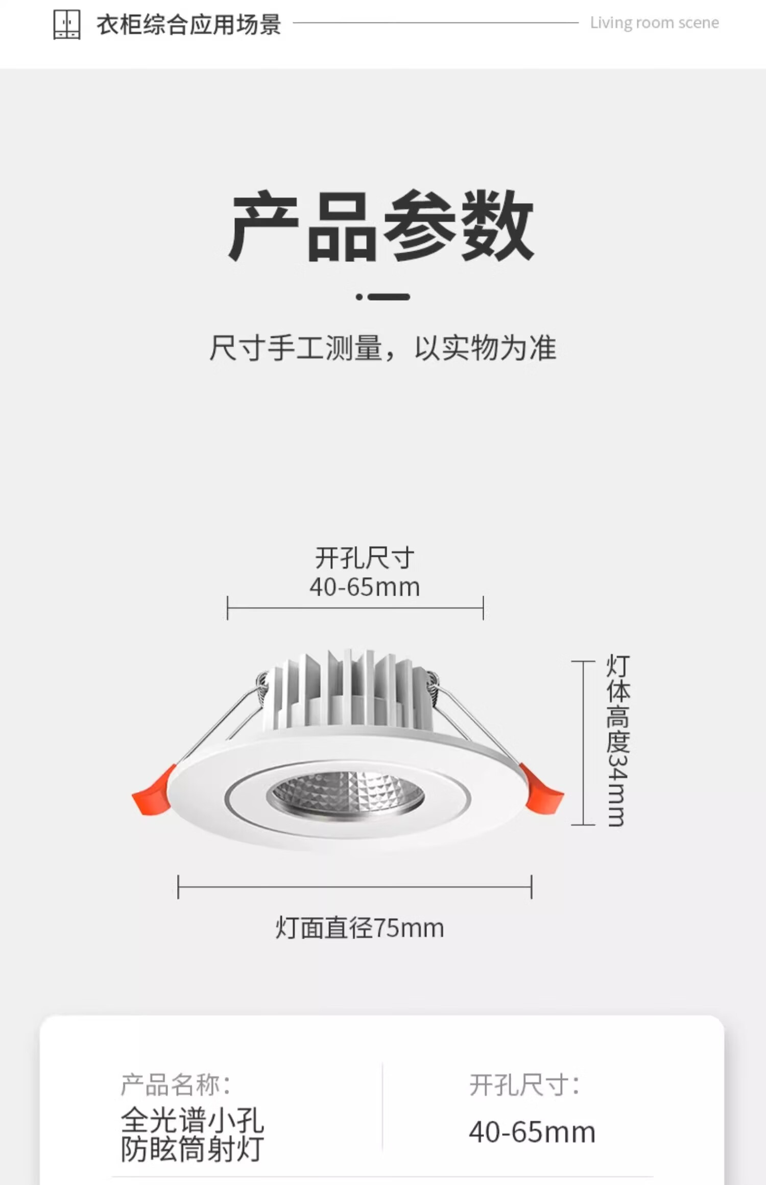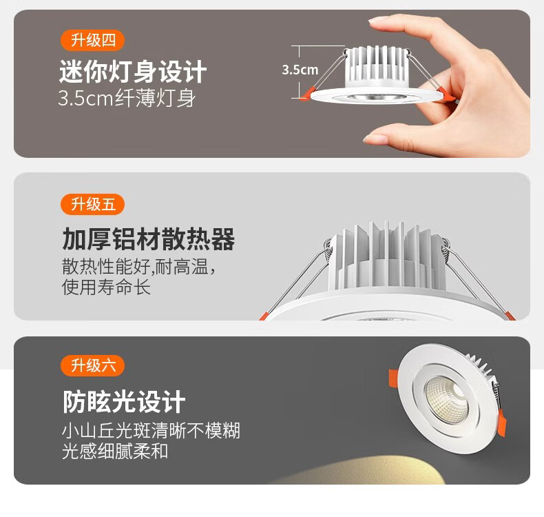 Fanyao LED small spotlight 40-65mm opening wine cabinet hole light cob anti-glare embedded main light 7w-three-color dimming